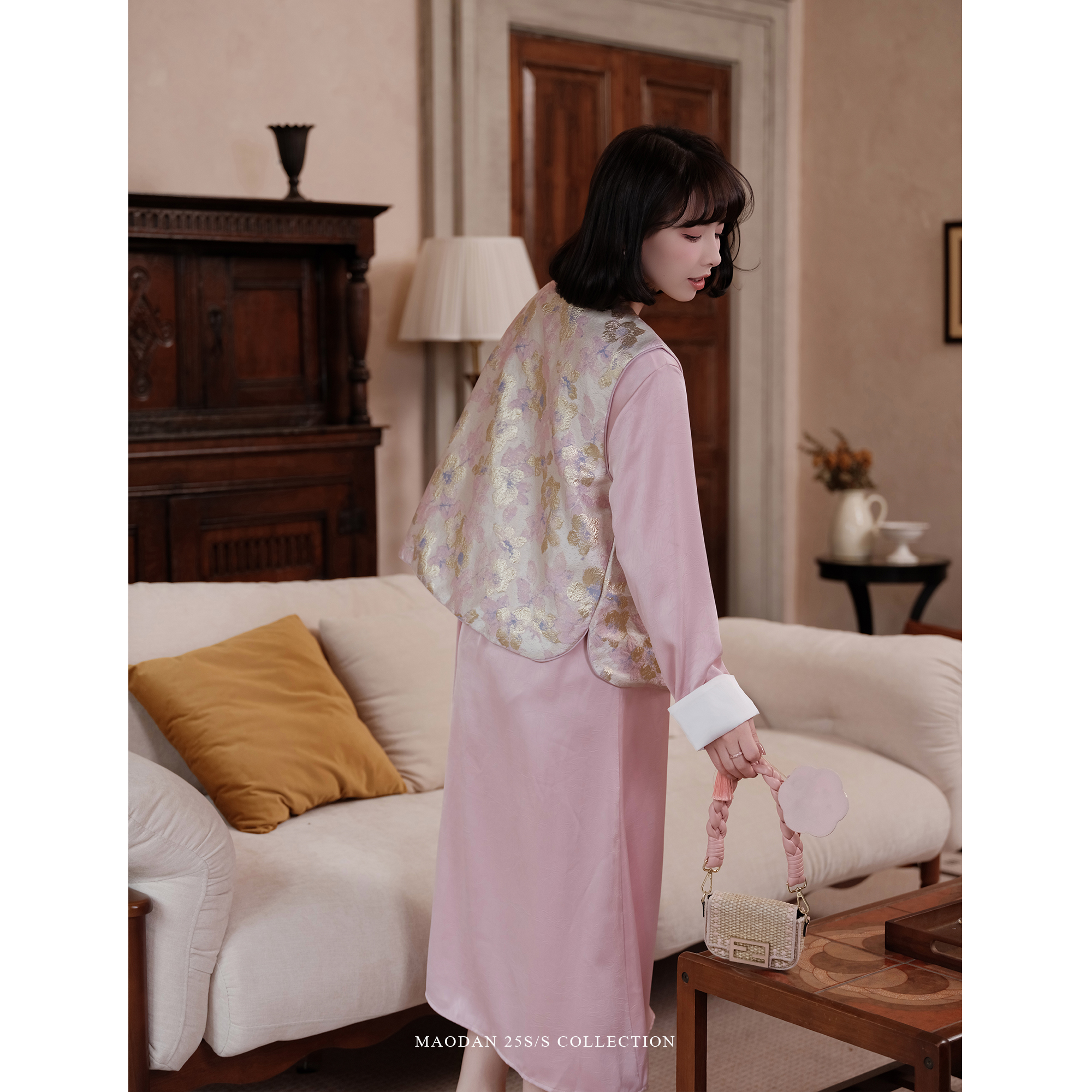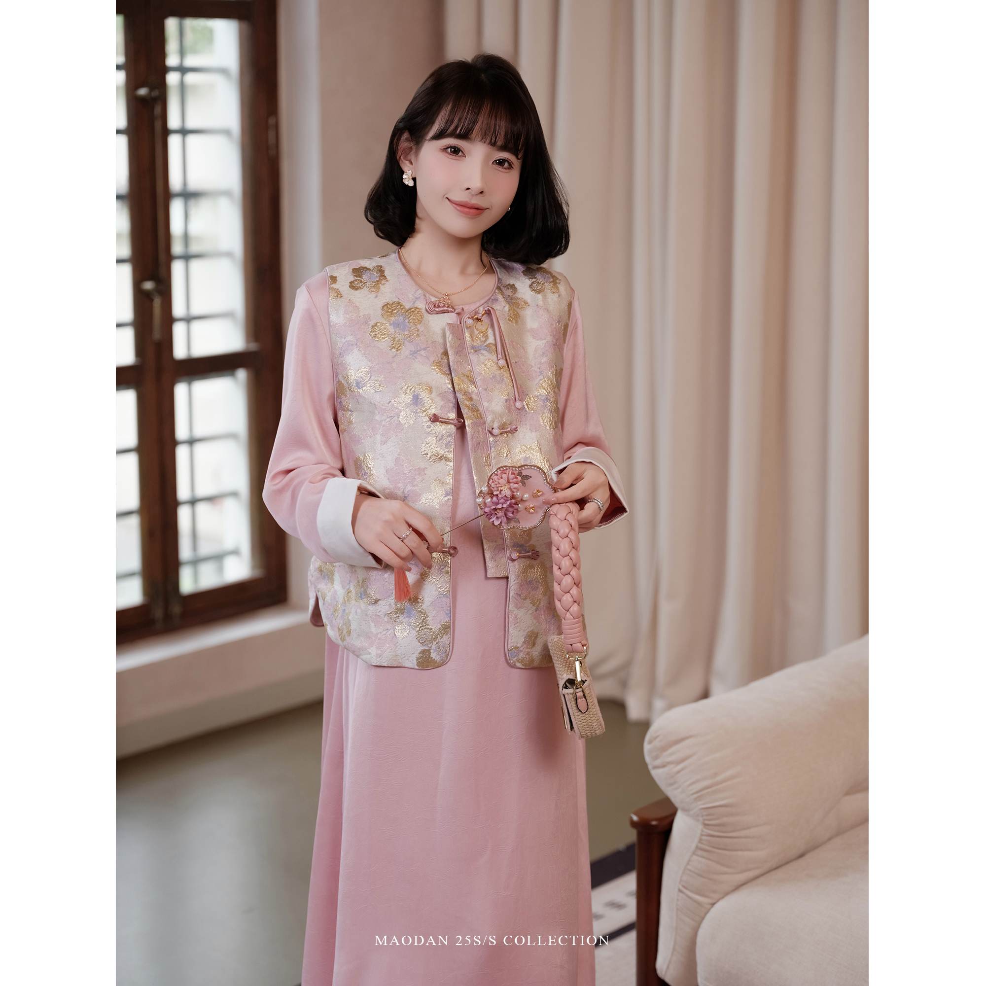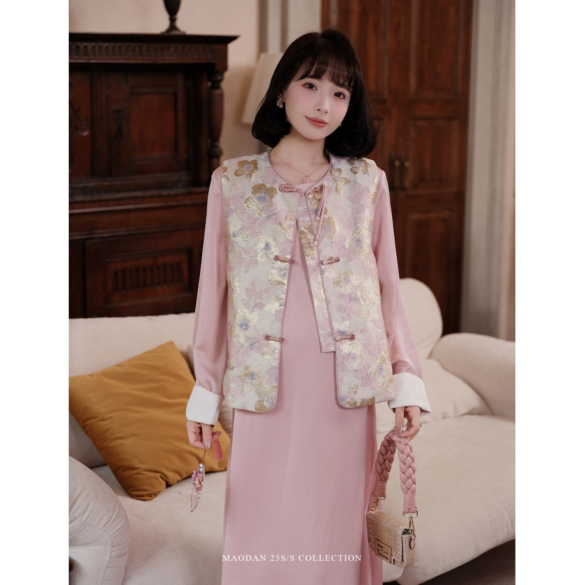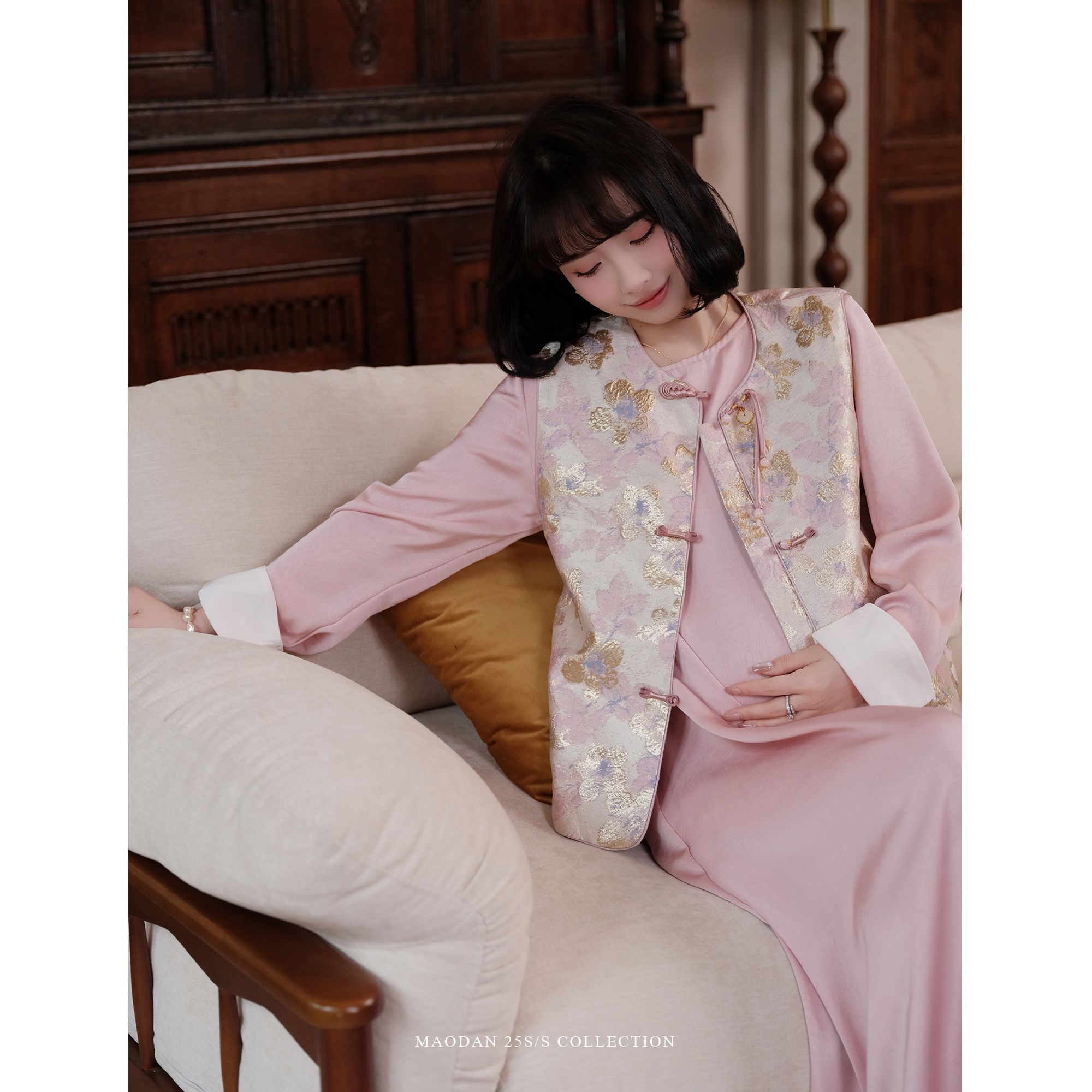 宽松缎面连衣裙秋冬款 猫单 气质中国风提花秋季 孕妇装 晚唐樱樱