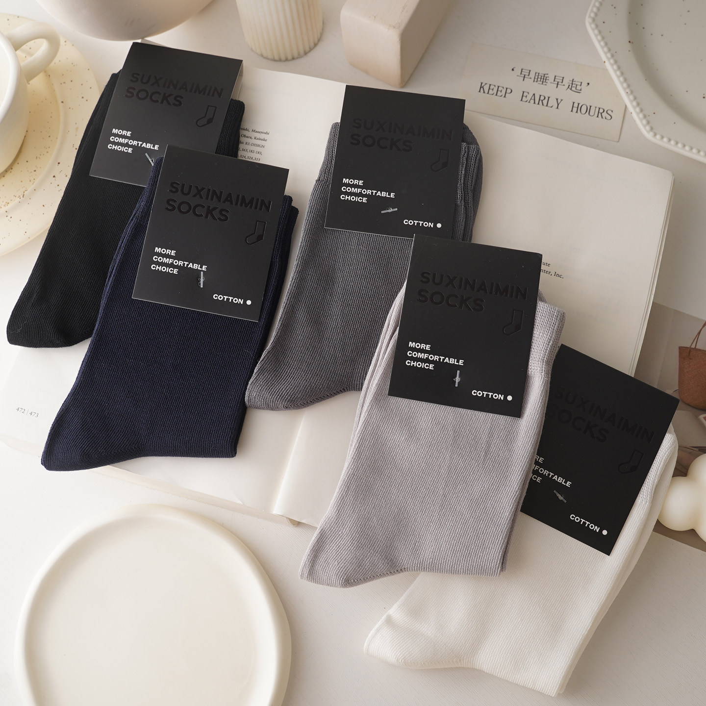新疆长绒棉 无骨缝头 2025新款 款 纯色袜 袜子男中筒四季 抑菌防臭
