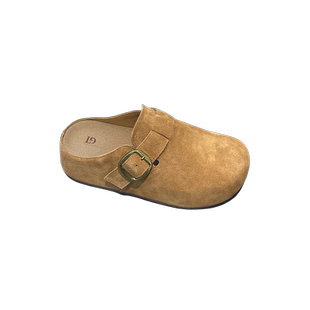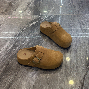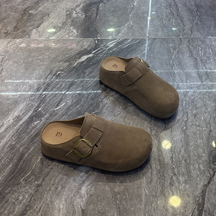 厚底博肯懒人鞋 男女真牛皮毛毛鞋 包头拖一脚蹬 加绒软木勃肯鞋 大码