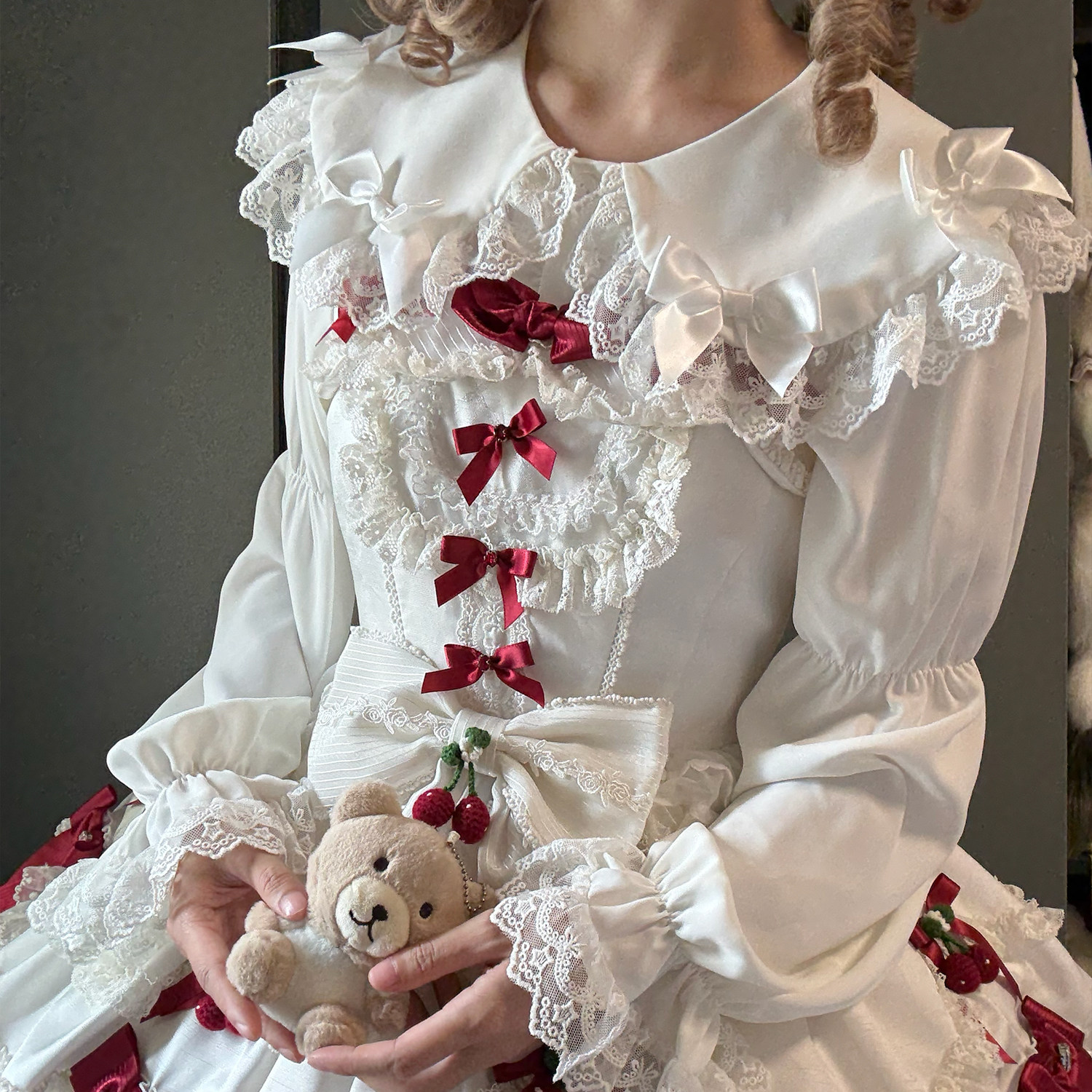 「NANACO」小奶糖衬衫 原创lolita内搭蝴蝶结蕾丝系带雪纺长袖
