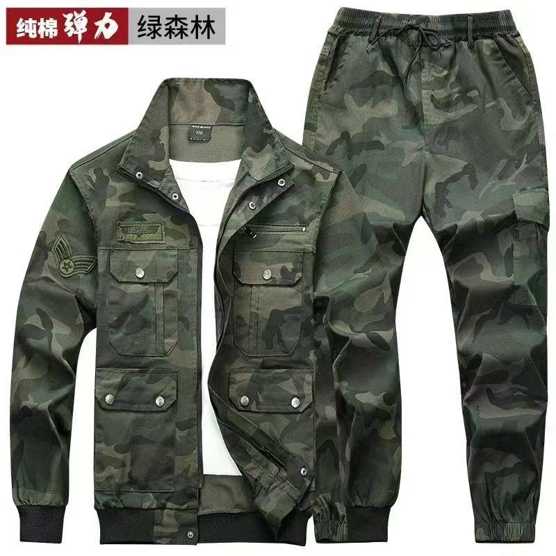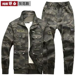 春秋纯棉迷彩服套装 男弹力防烫电焊工劳保服工地干活耐磨工作服女