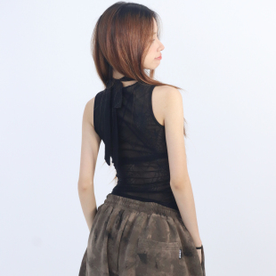 大佬街舞潮牌烫钻蜘蛛后背半高领背心jazz性感辣妹极简无袖 5347