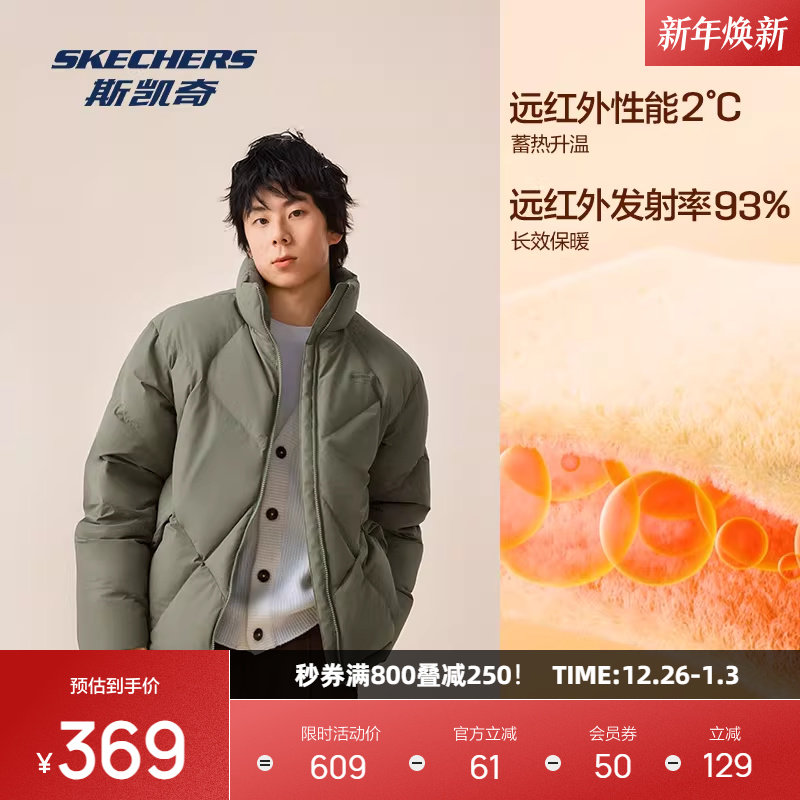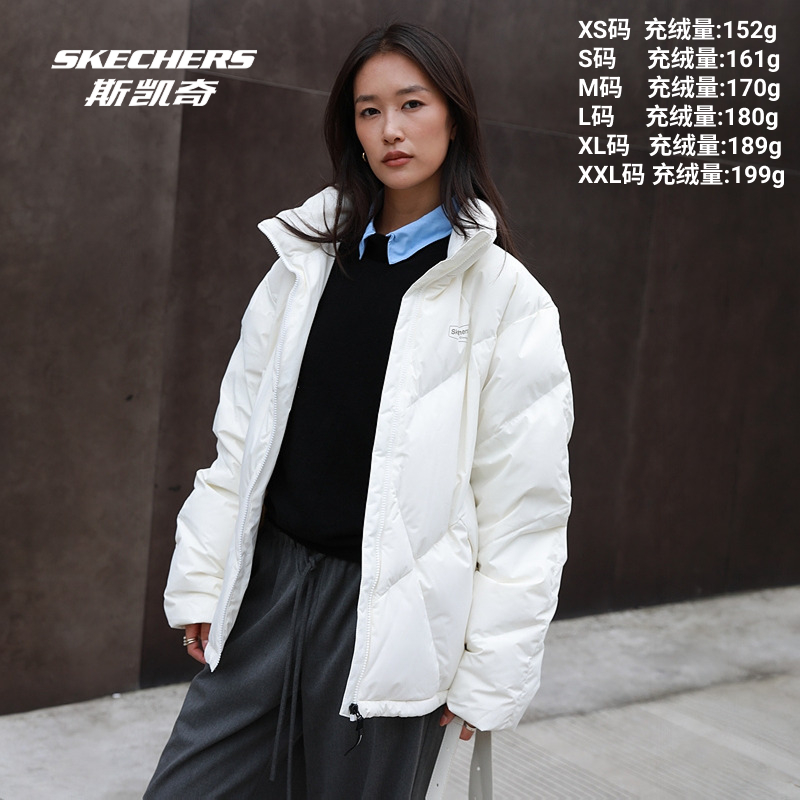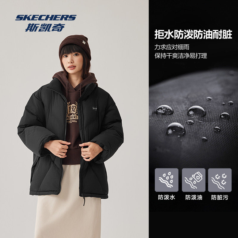 斯凯奇连帽短款 鸭绒保暖加厚户外运动百搭 羽绒服面包服男女同款