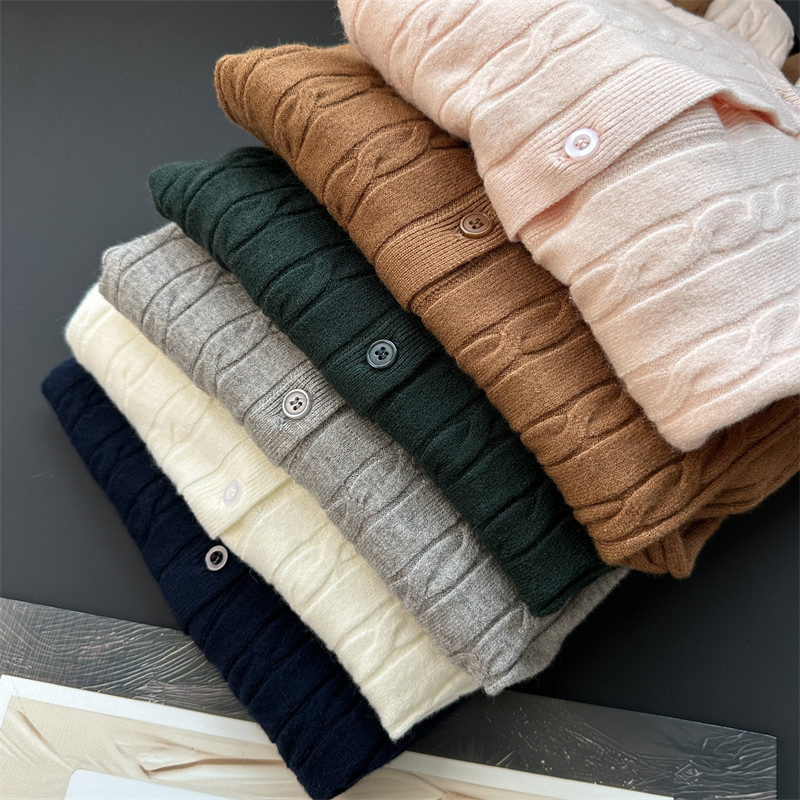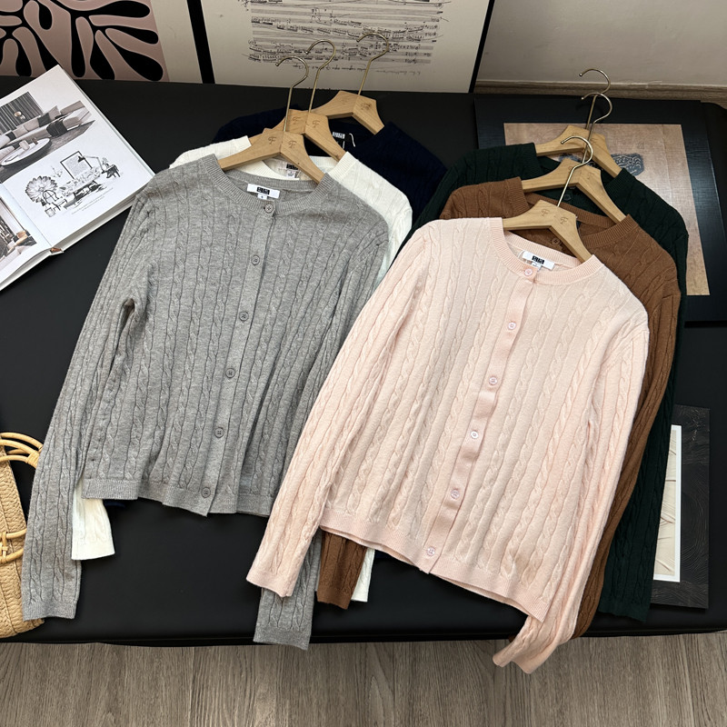 通勤秋冬新款 毛衣外套空调衫 软儒纽花圆领针织开衫 延续JING典