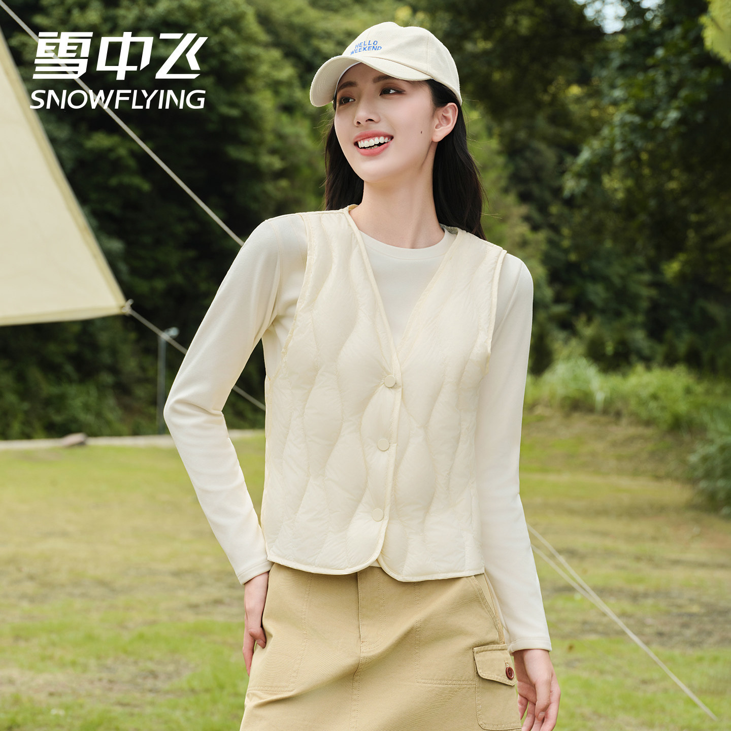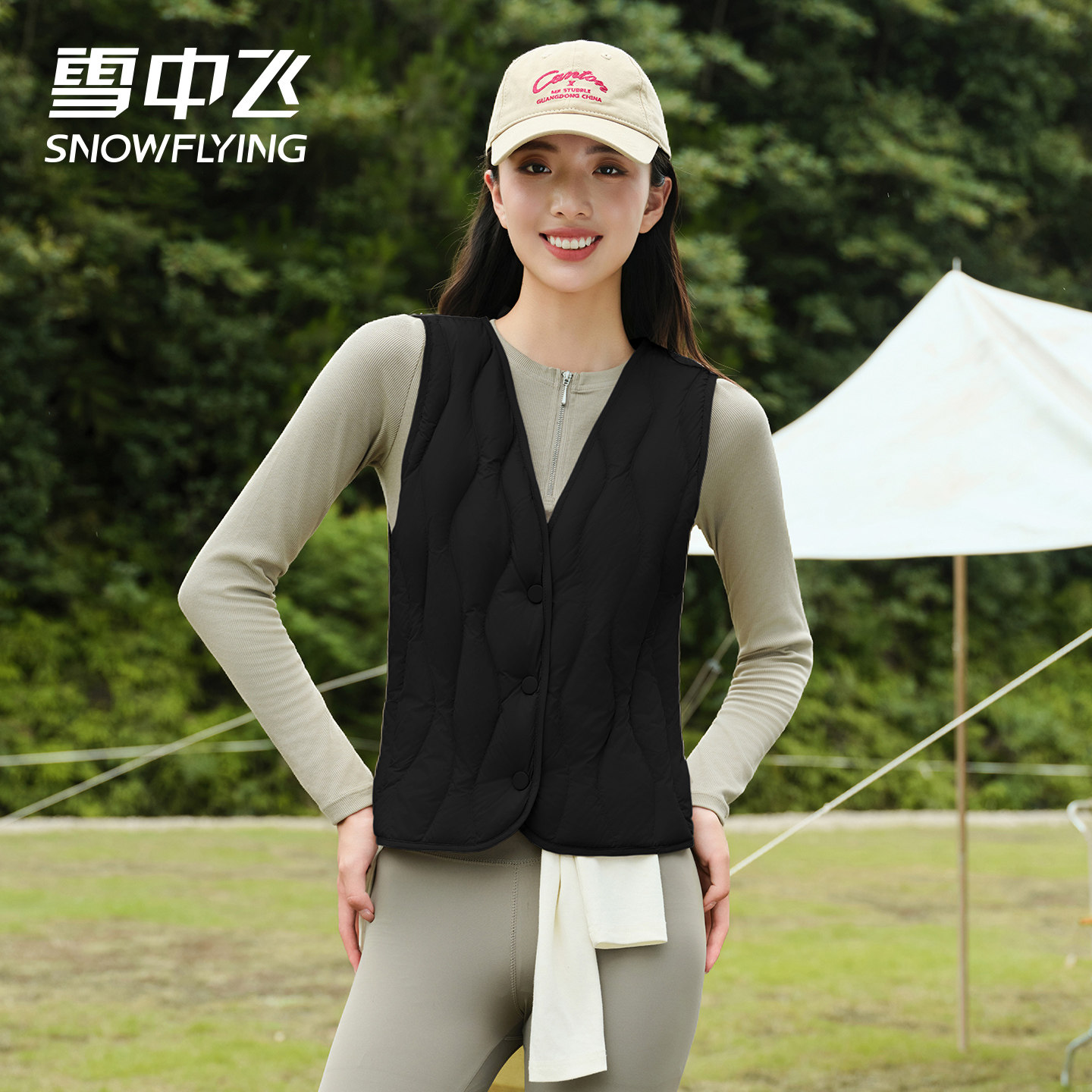 雪中飞轻薄羽绒背心马甲女2025新款 秋冬上衣 V领羽绒内胆保暖短款