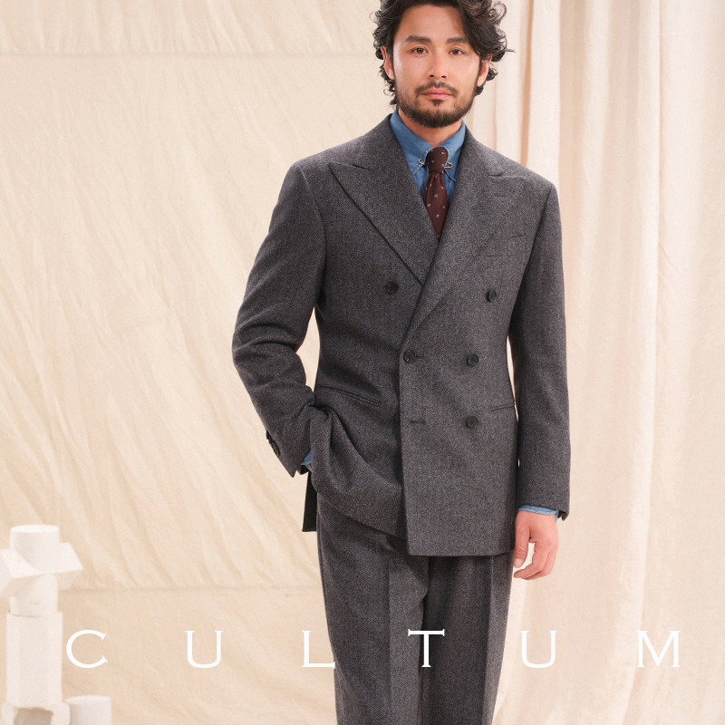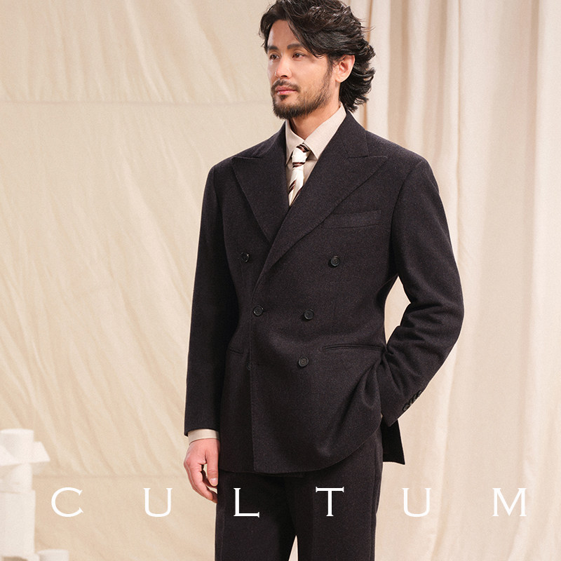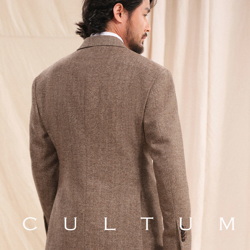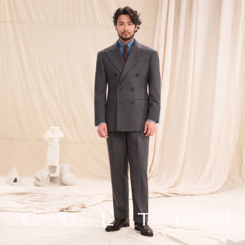 男 CULTUM复古宽肩人字纹双排扣戗驳领西服套装 绅士盔甲50羊毛