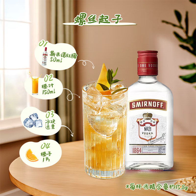 斯米诺红牌伏特加洋酒200ml鸡尾酒基酒调酒mojito莫吉托 进口