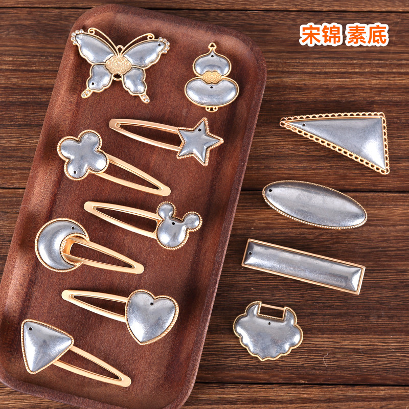 宋锦发夹底托手工diy配件边夹发饰品非遗创意制作刺绣蓝染包贴布