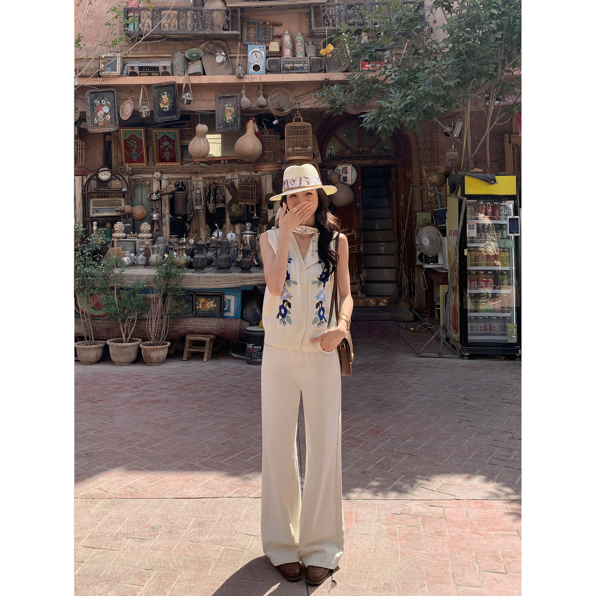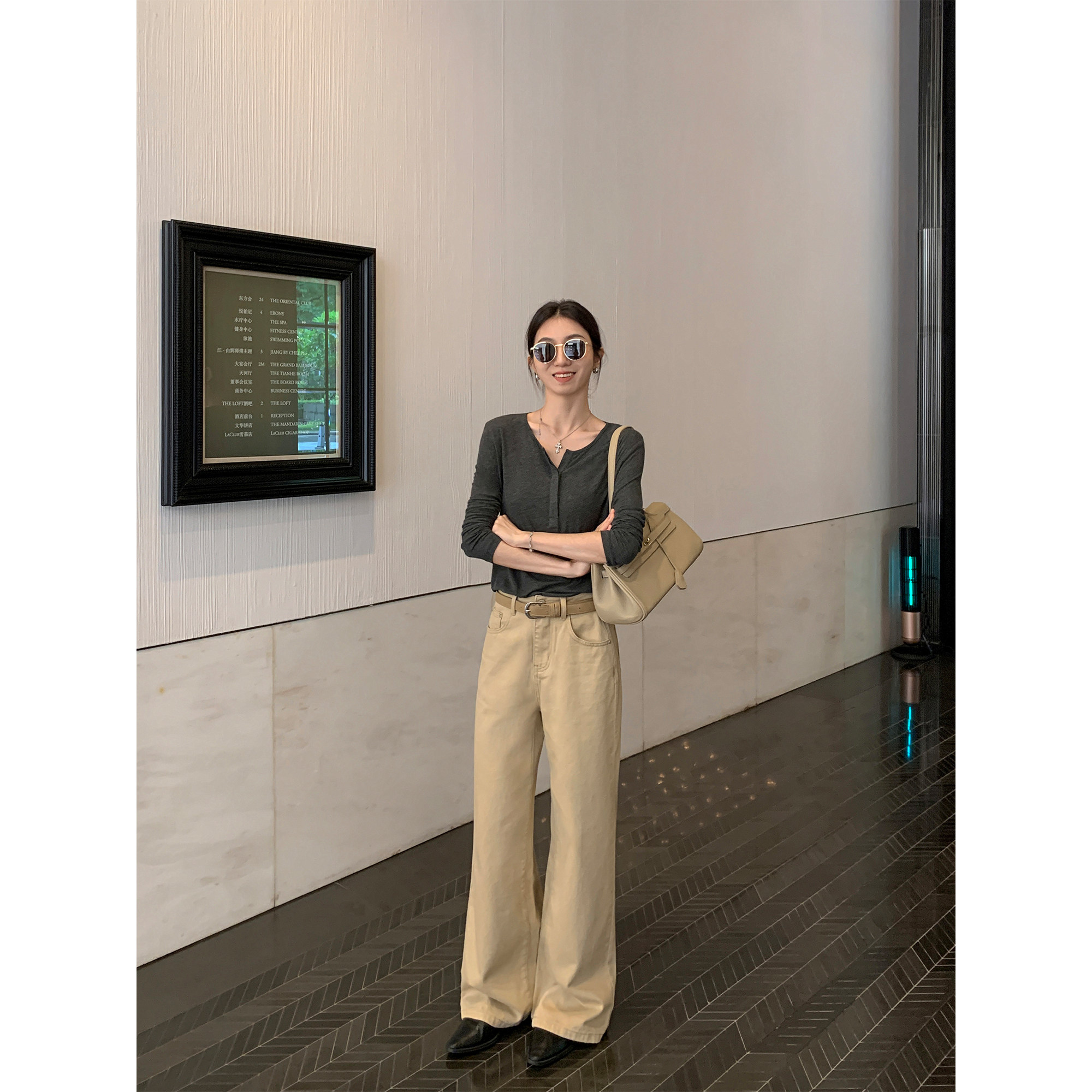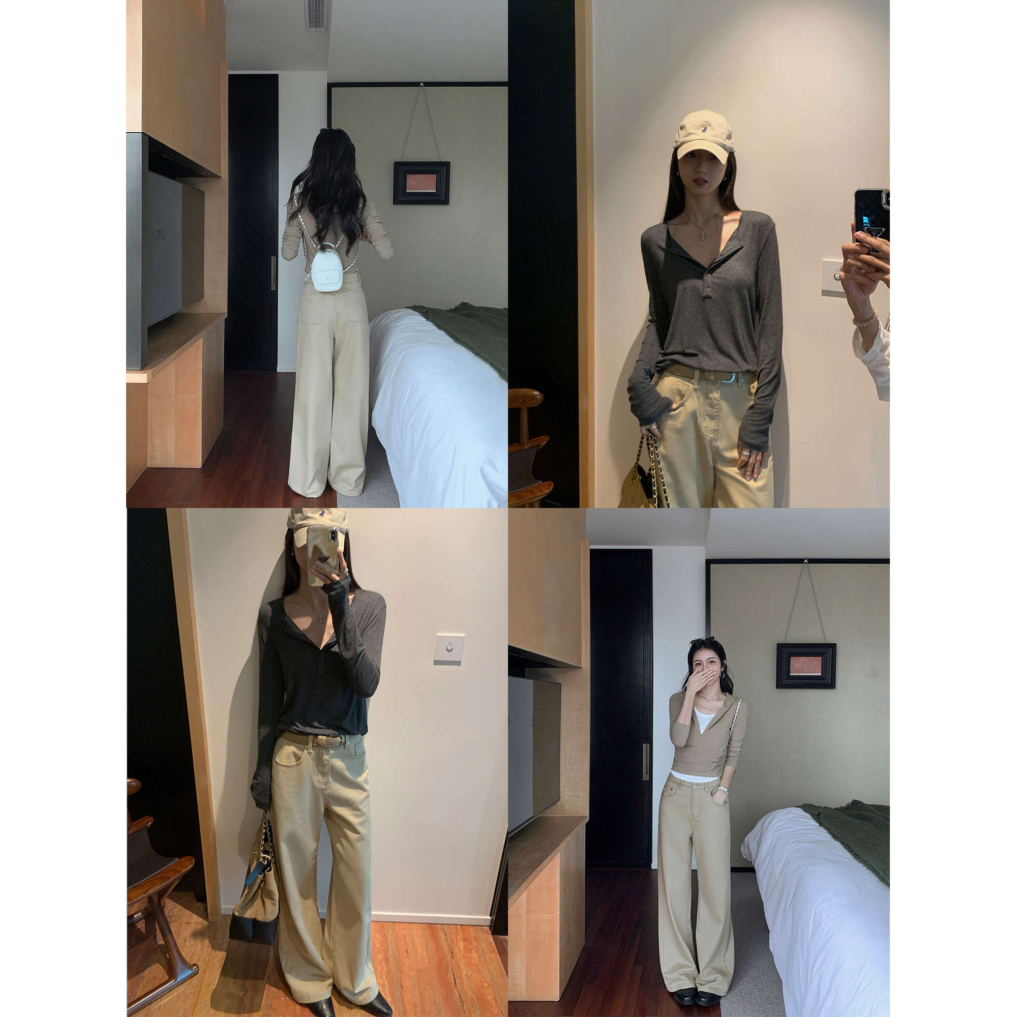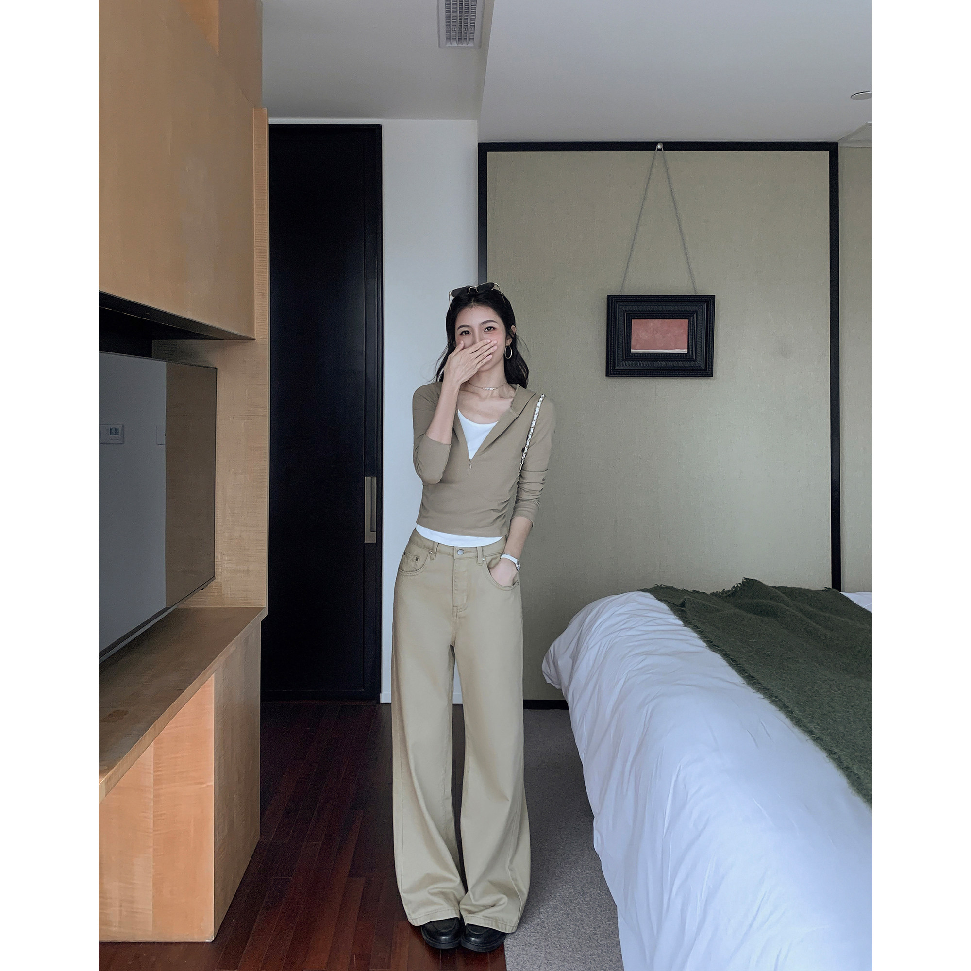 靓裤 高腰直筒垂感长裤 上线 女宽松休闲裤 米白色阔腿牛仔裤 MULVAN