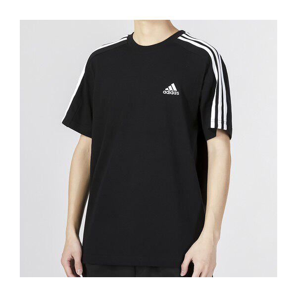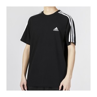 布布 复古运动针织短袖 adidas 纯色条纹印花美式 男款 T恤