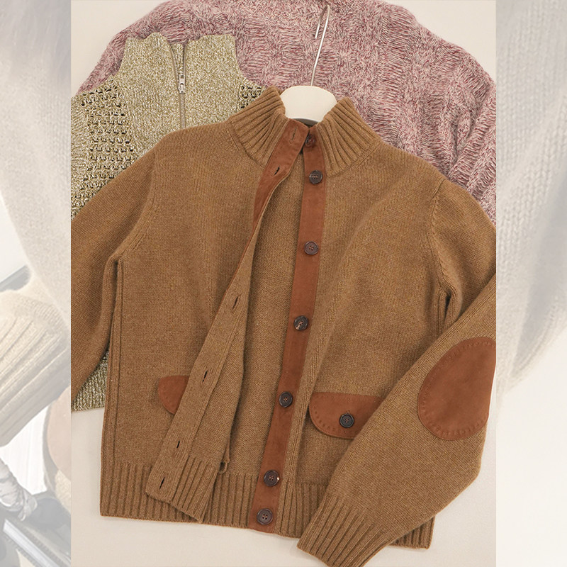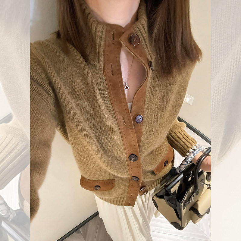 RTIMFD复古假两件v领翻领毛衣 上衣慵懒风外套 cleanfit高级针织衫