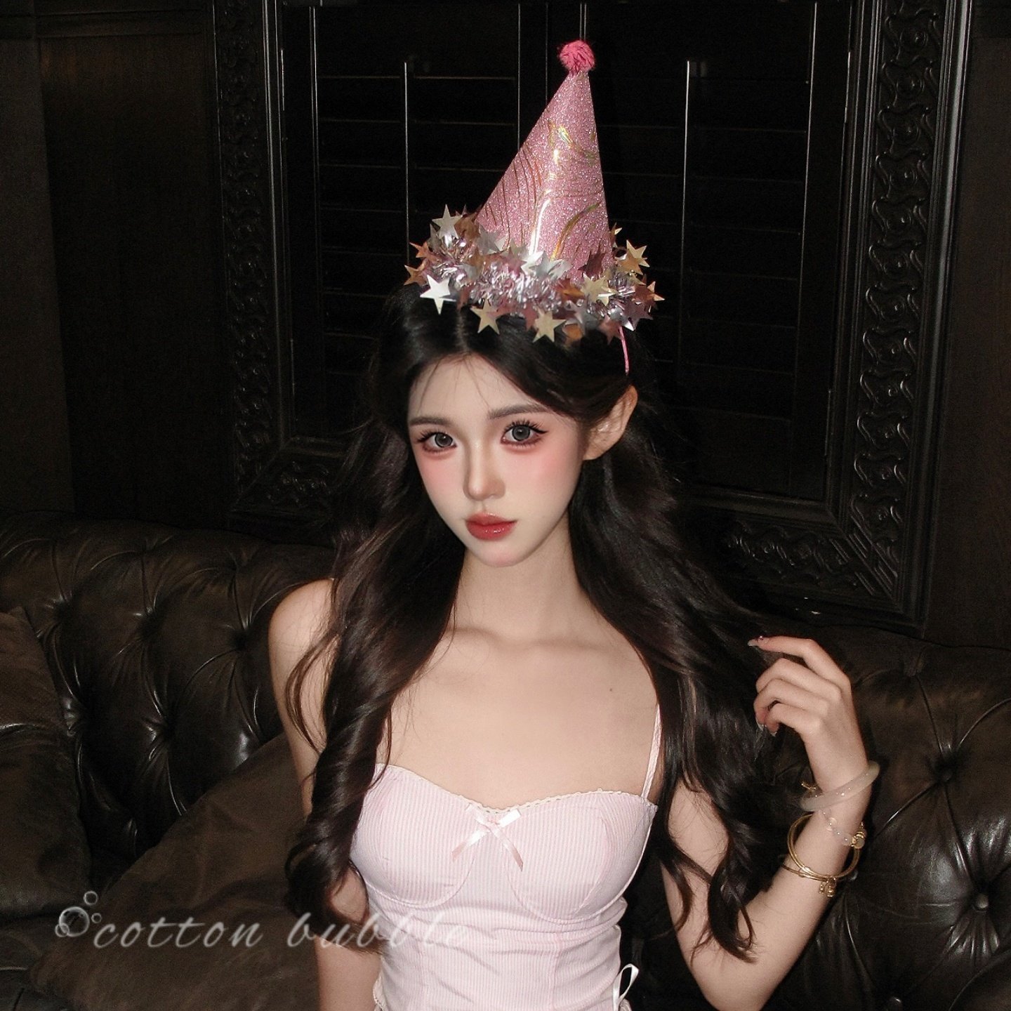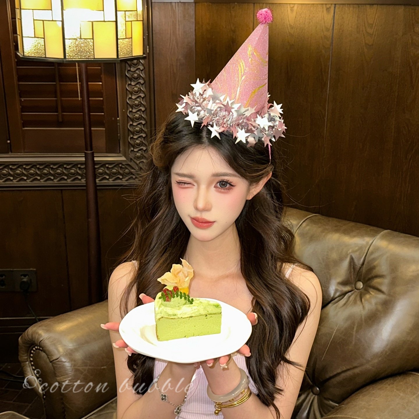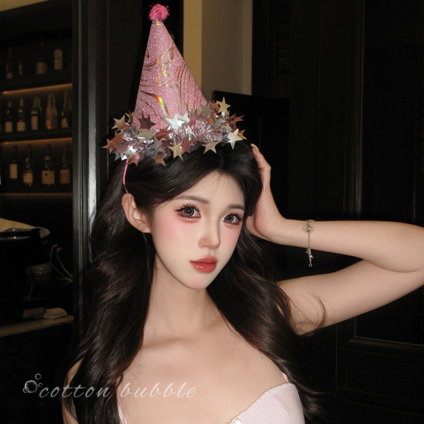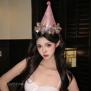 粉色生日帽子头饰拍照道具成人可爱女生儿童发饰氛围party装 饰品
