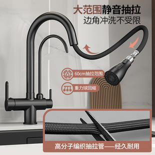 全铜厨房洗菜盆冷热抽拉式 水龙头洗碗池专用水槽洗菜池360度旋转