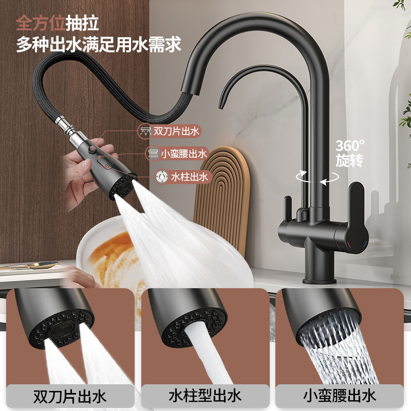 全铜厨房抽拉式 水龙头冷热水防溅水家用洗菜盆伸缩头水槽阳台通用
