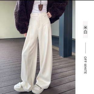 裤 女装 女2025秋冬季 休闲加厚阔腿裤 新款 加绒毛呢纯色显瘦直筒西装