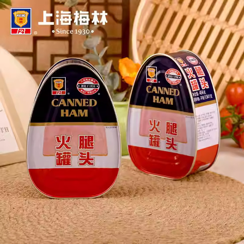 上海梅林火腿罐头340g三角易拉罐午餐肉即食肉类罐头方便速食制品
