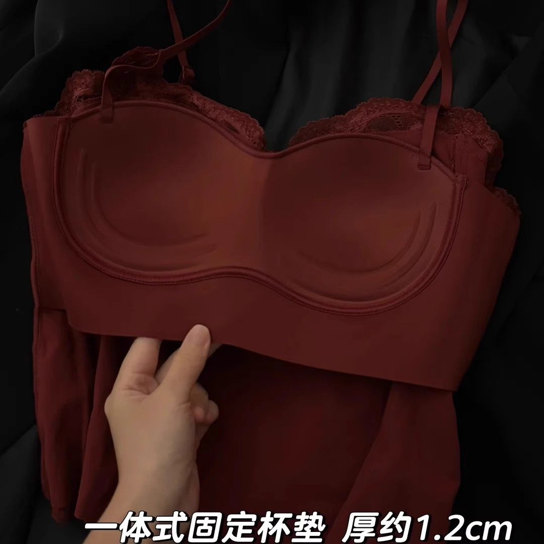秋冬磨毛保暖吊带蕾丝美背一体杯免穿文胸背心女修身 显瘦打底上衣