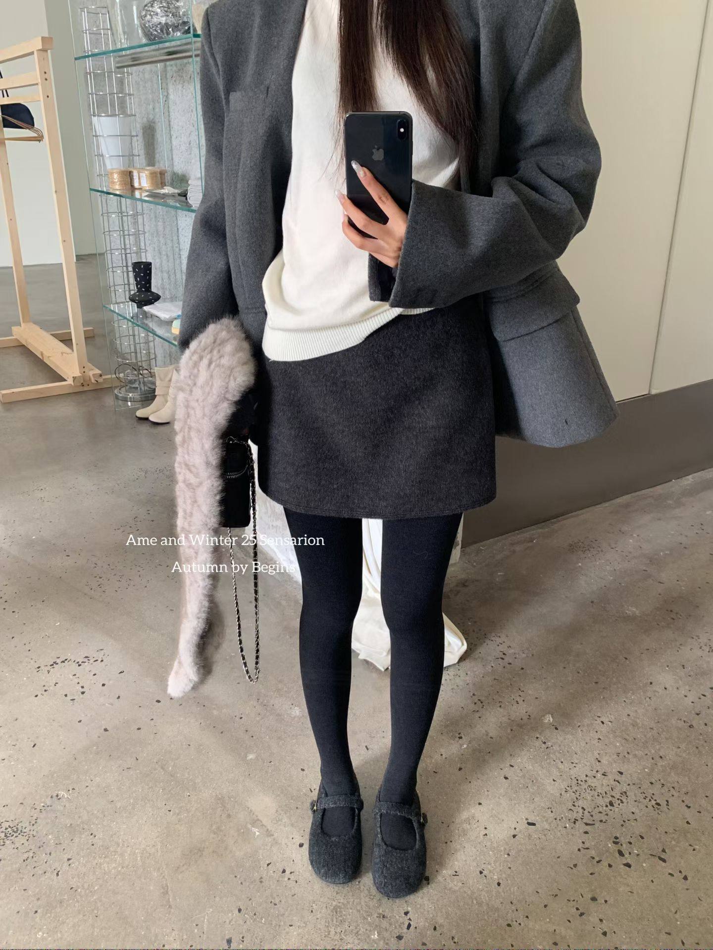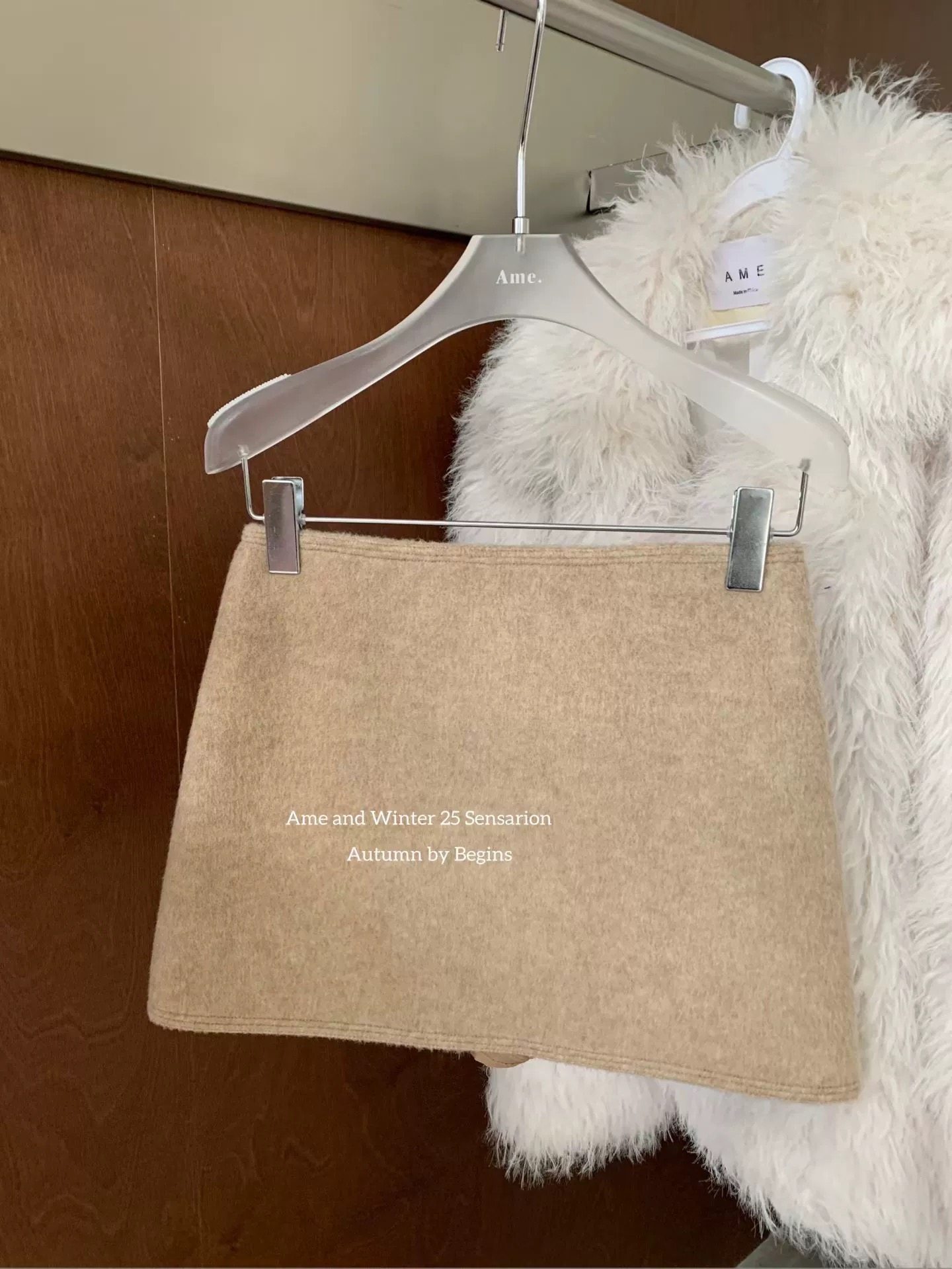 AME2025秋冬韩版 高品质气质加厚双面羊毛半身裙高腰显瘦A字半身裙