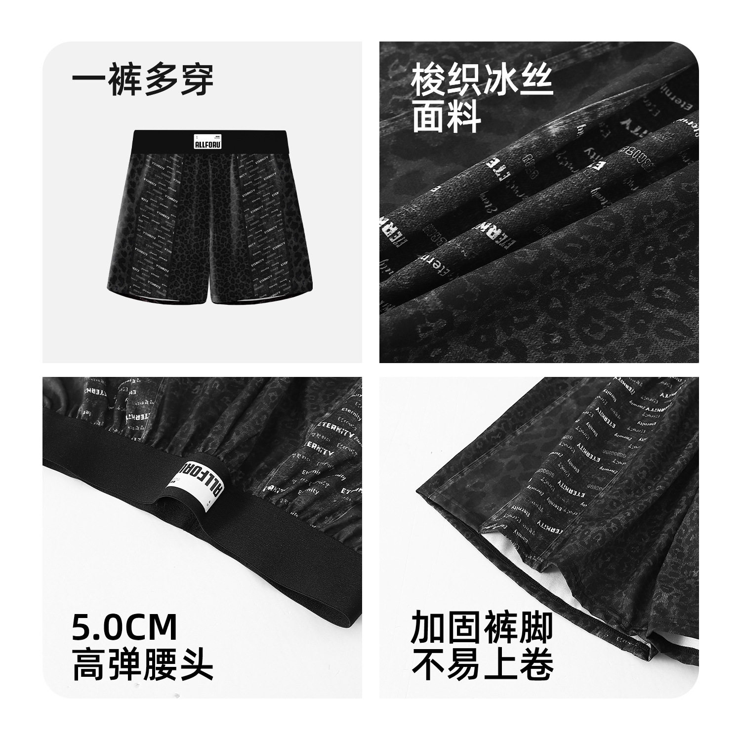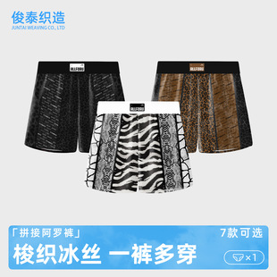 阿罗裤 秋冬拼接豹纹男士 短裤 冰丝居家休闲男生青年运动平角裤 内裤