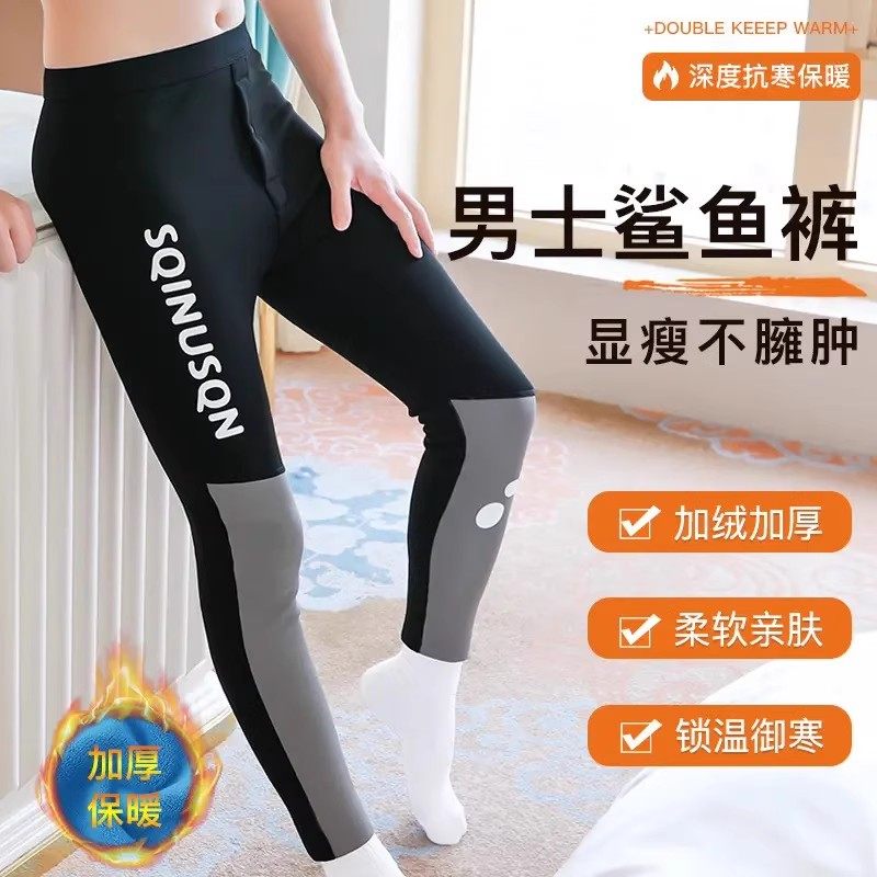 鲨鱼裤 冬季 打底绒裤 保暖裤 男生巴比裤 加绒加厚防寒棉毛裤 秋裤 男士