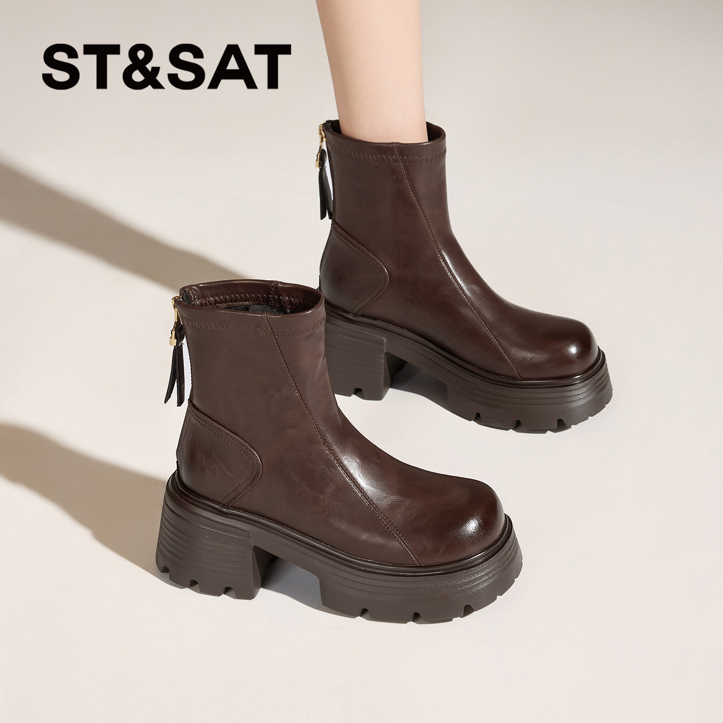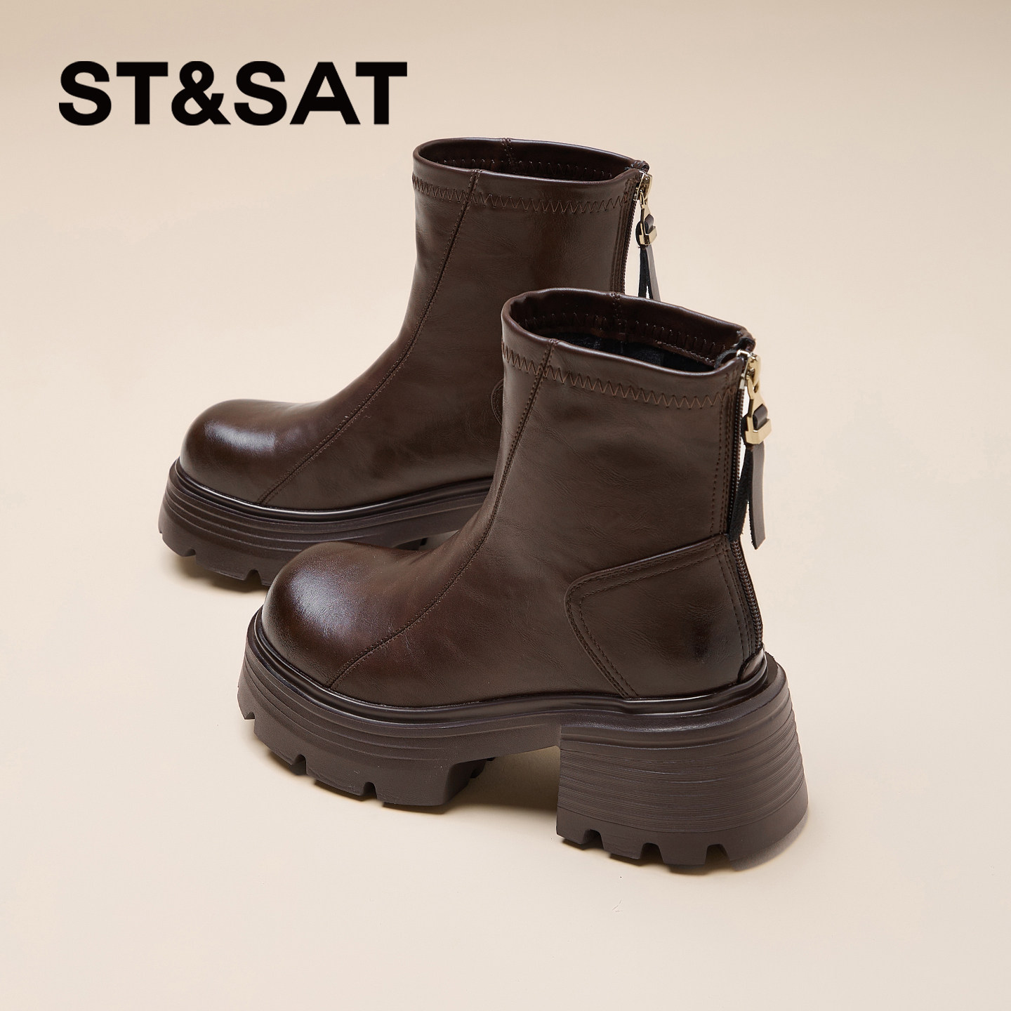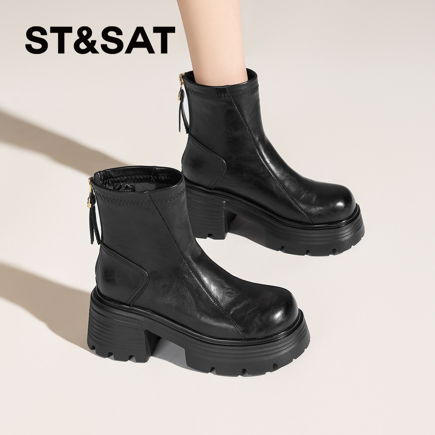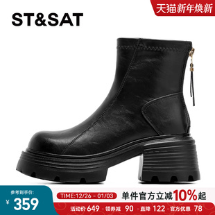 增高粗跟瘦瘦靴子英伦皮面短靴 冬季 星期六厚底马丁靴女款 2025新款