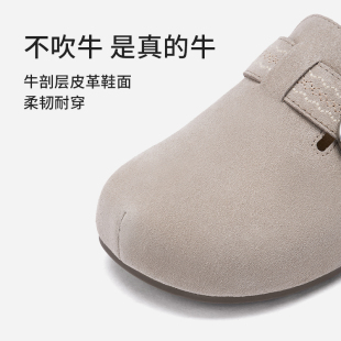 外穿通勤半拖百搭舒适平底鞋 热风复古勃肯鞋 新款 2026年春季 子 女鞋