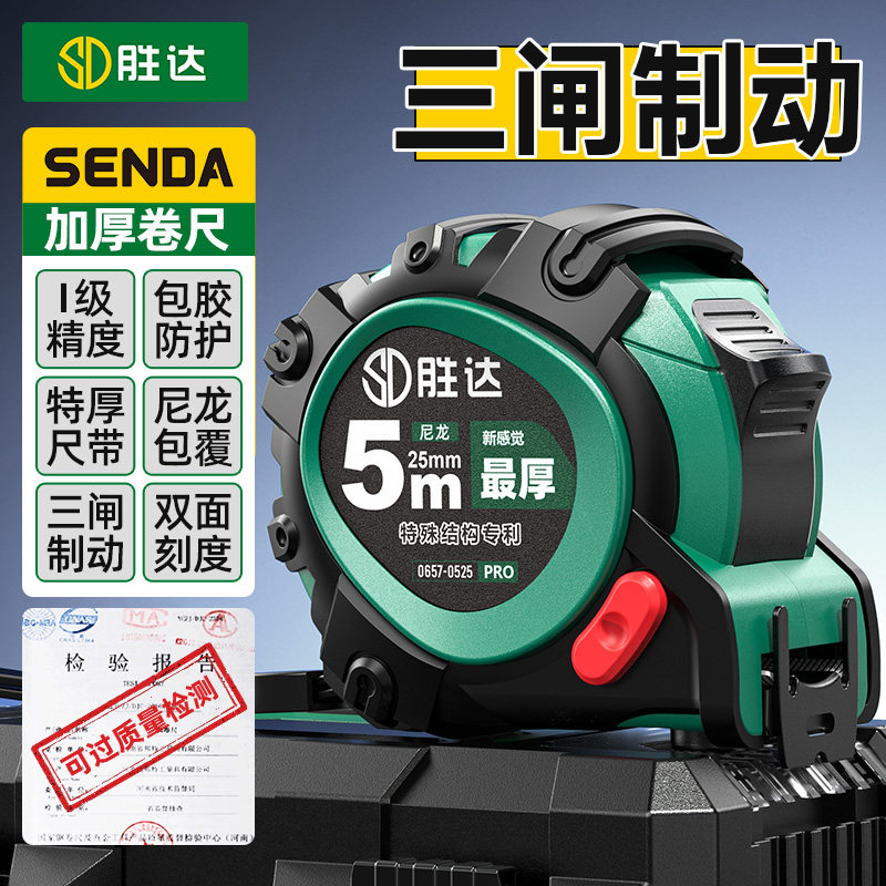 胜达卷尺高精度加厚加硬尺子3米量尺圈尺米尺米5米三闸自动钢卷尺