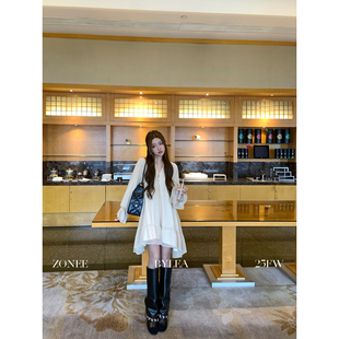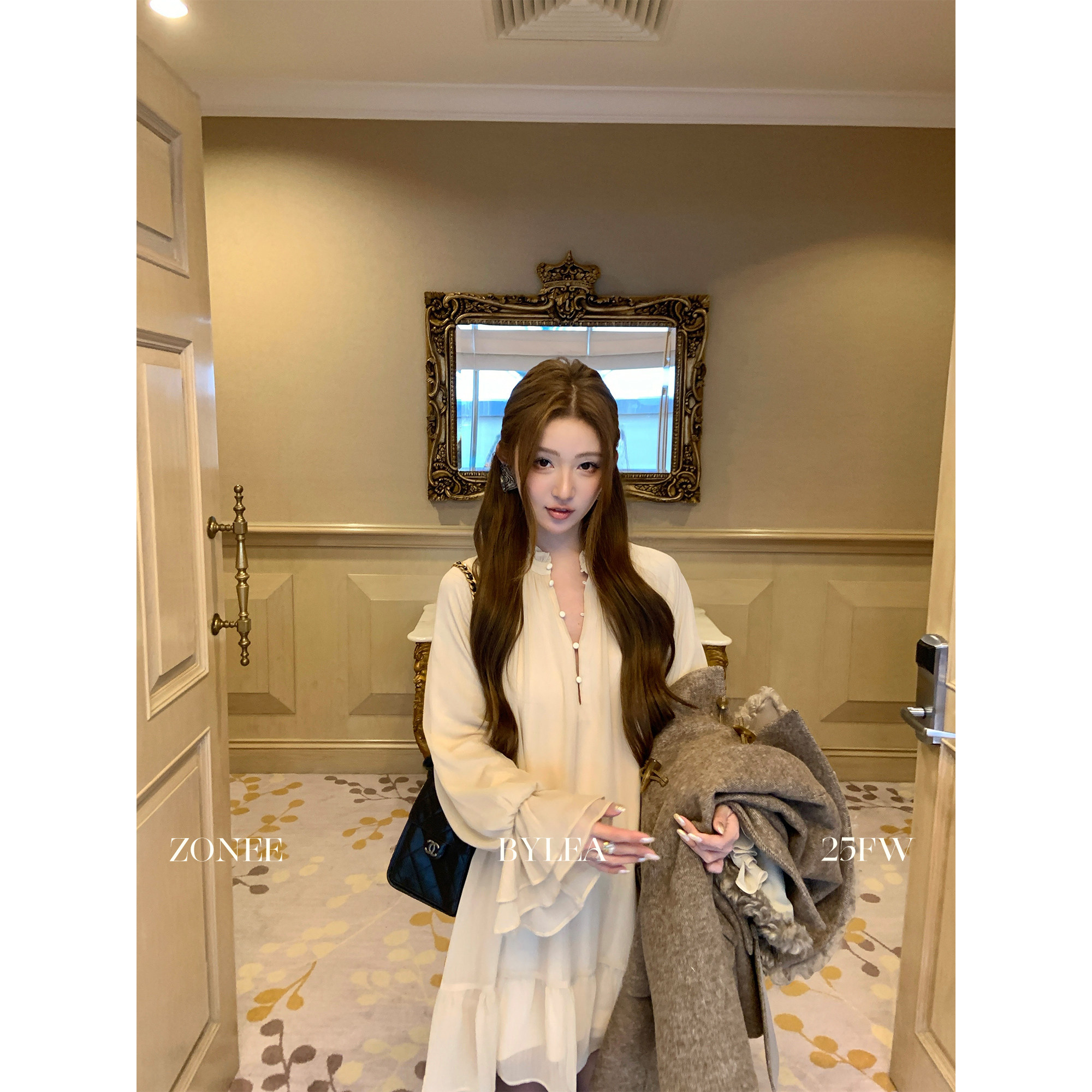 法式 千金感法则 时髦设计感内里加绒雪纺连衣裙 LEA宋亦雯 ZONEE