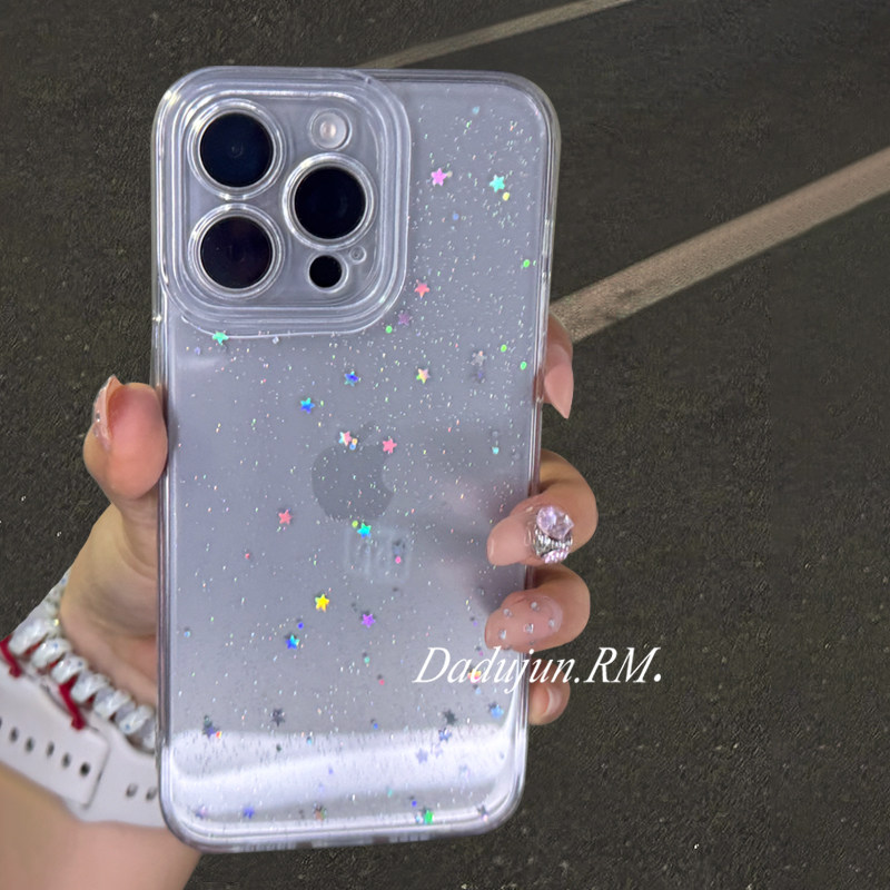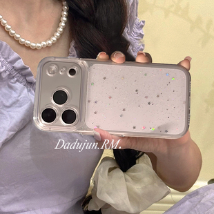 ins超火透明闪粉星星适用苹果17promax手机壳新款 iphone16promax全包防摔15pro滴胶14硅胶pm高级感保护套女软