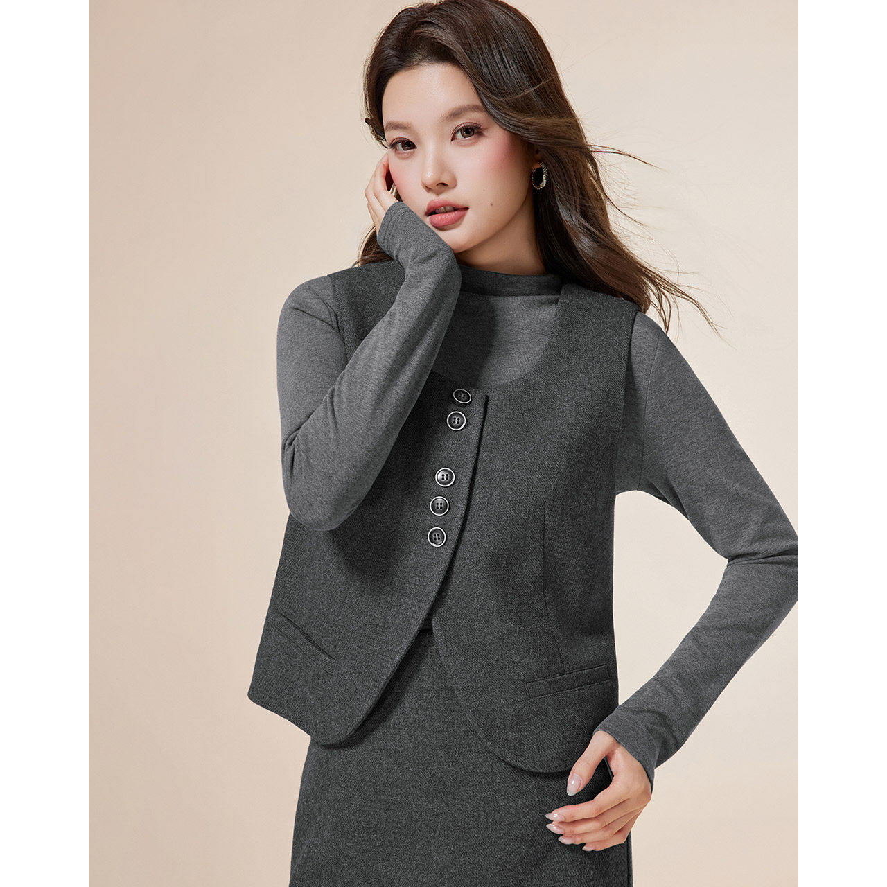 法式 IEF 2025秋冬新款 套装 气质感通勤百搭呢绒上下套裙 爱依服时尚