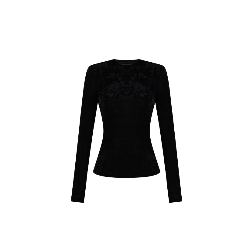 显瘦长袖 气质修身 圆领上衣 黑色百搭冰花丝绒打底衫 XULU原创秋季