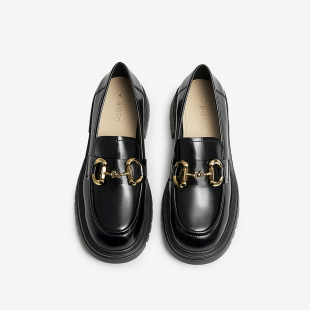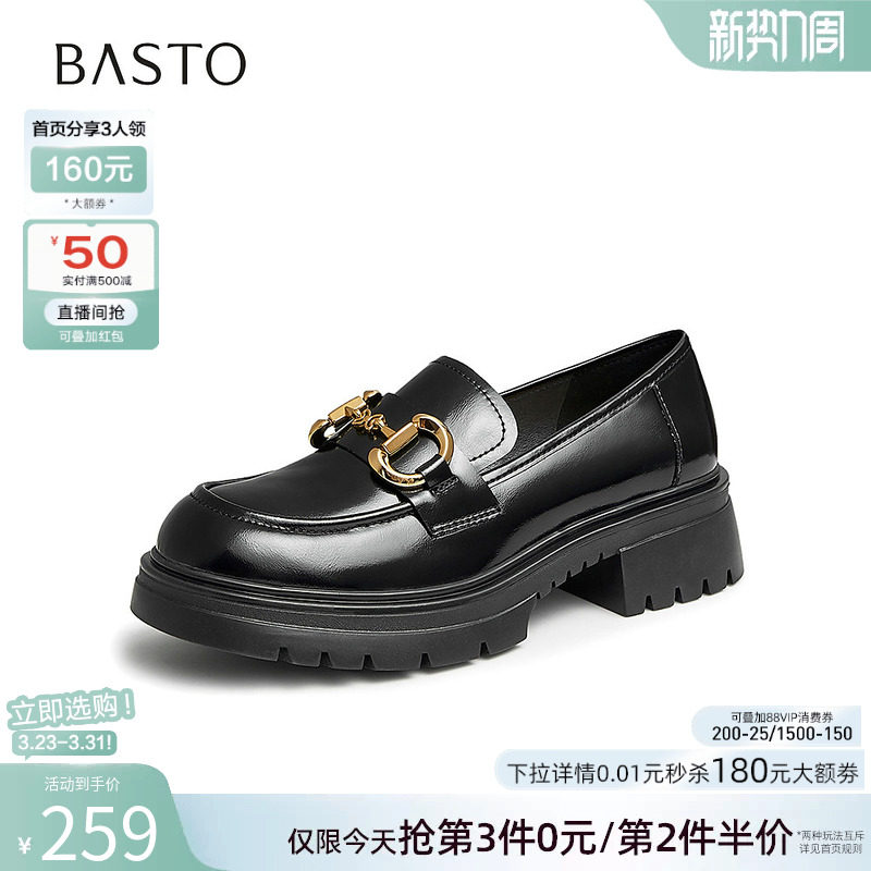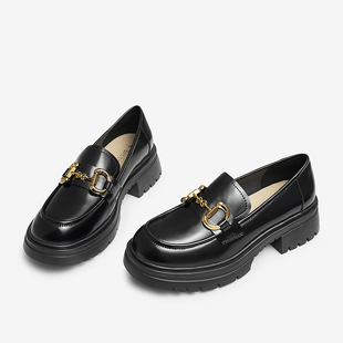 新款 女单鞋 时尚 小皮鞋 TFW48AA4 通勤厚底圆头乐福鞋 百思图春季