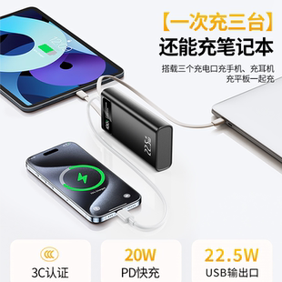 20000 小米充电宝自带线快充版 33W双向快充小巧超大容量便携移动电源适用于华为小米苹果17手机 3C认证