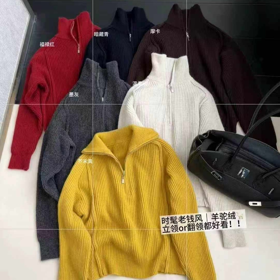 翻领半拉链纯色羊驼绒针织衫 时尚 女宽松显瘦百搭毛衣 新款 2025冬季