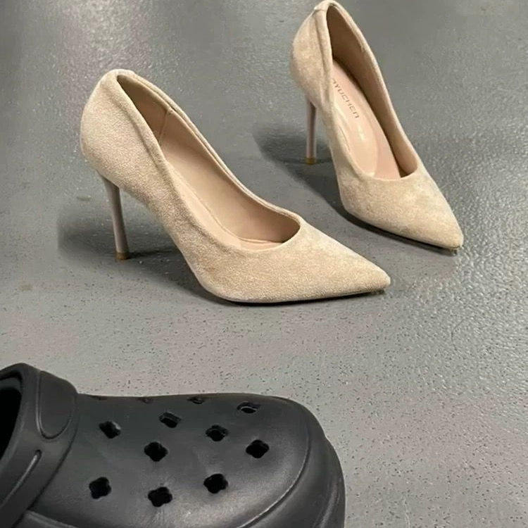 超大码 单鞋 少女细跟2025春秋甜美裸色尖头浅口法式 名媛风高跟鞋