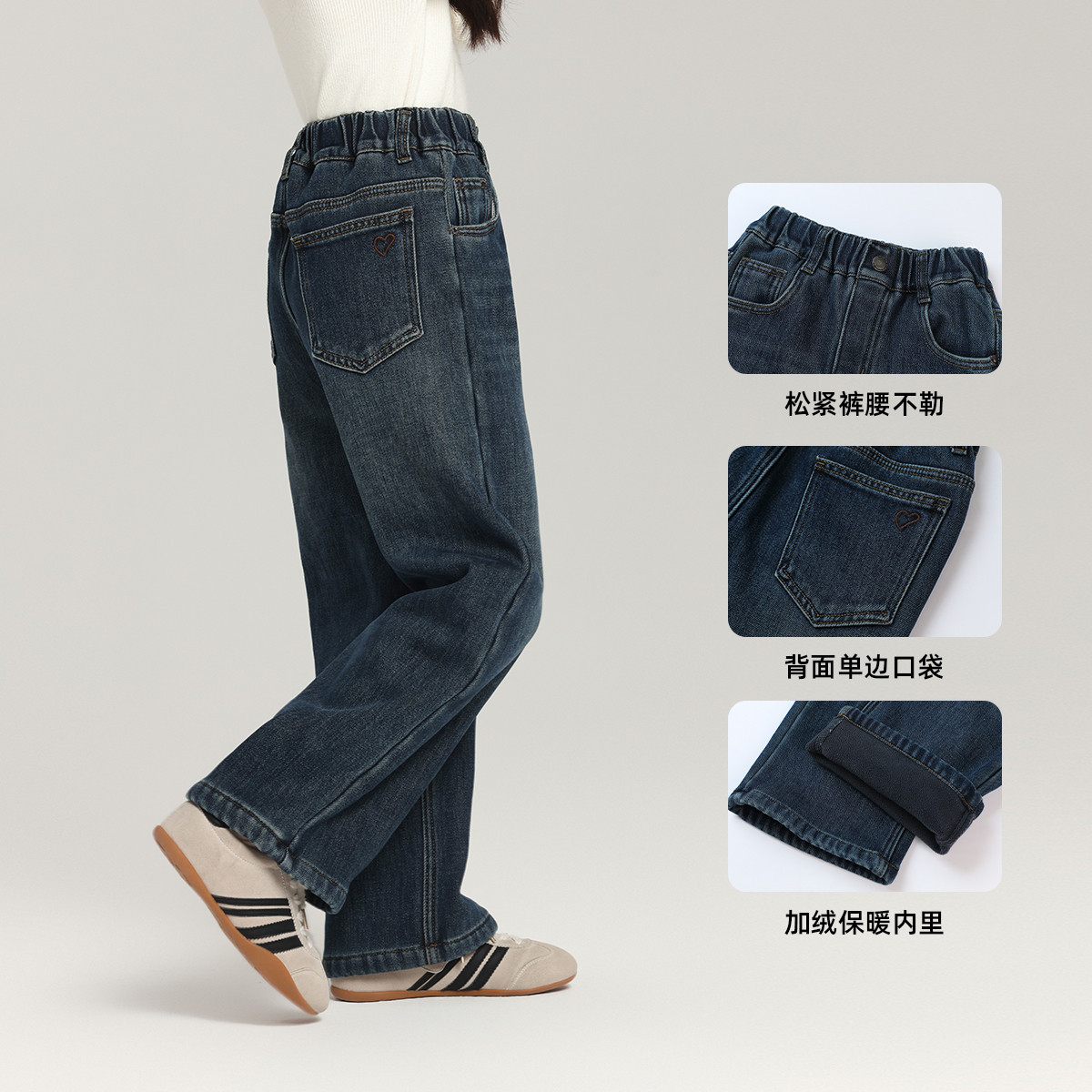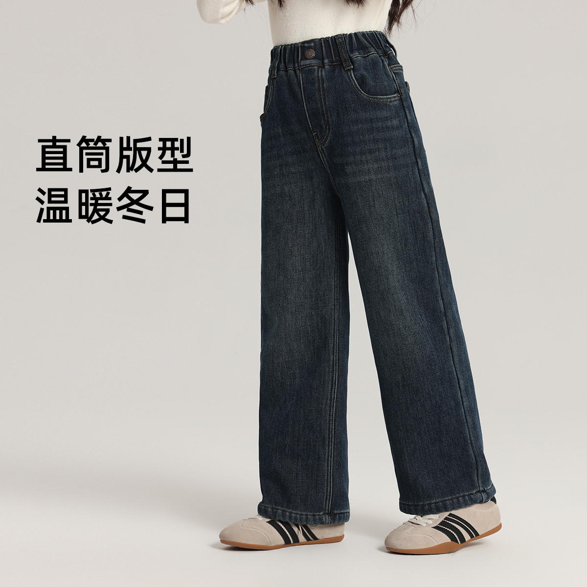 儿童加绒直筒牛仔裤 布丁哈鲁冬装 子2025秋冬款 女童百搭裤 童装