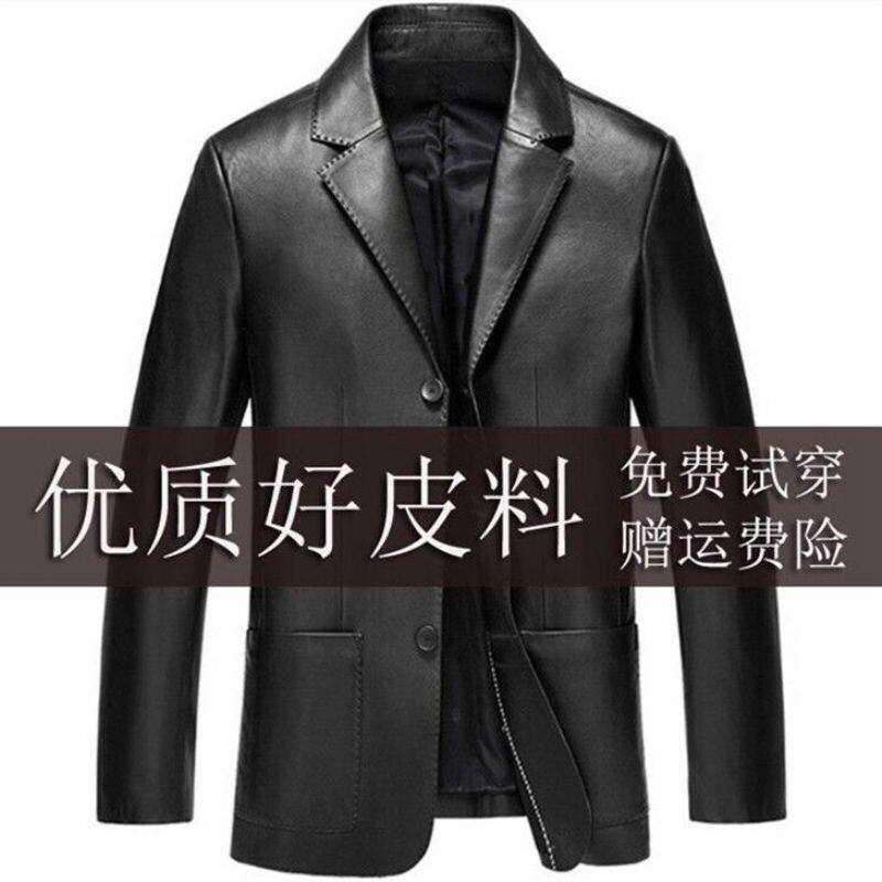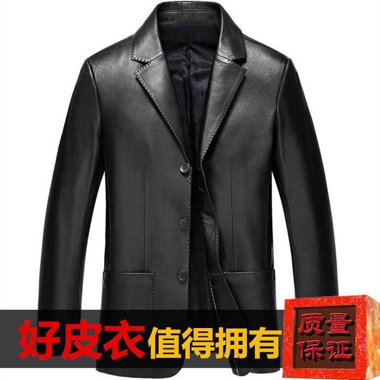 薄款 领皮夹克休闲大码 皮外套加绒 海宁真皮皮衣男绵羊皮西装 秋冬款
