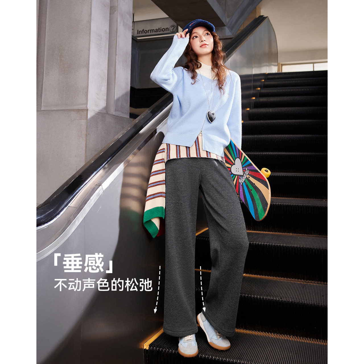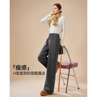 简约休闲慵懒风加绒加厚保暖阔腿裤 IEF 新款 子2025冬季 爱依服裤
