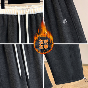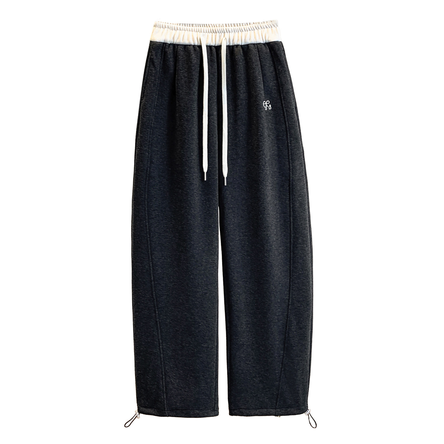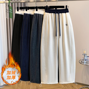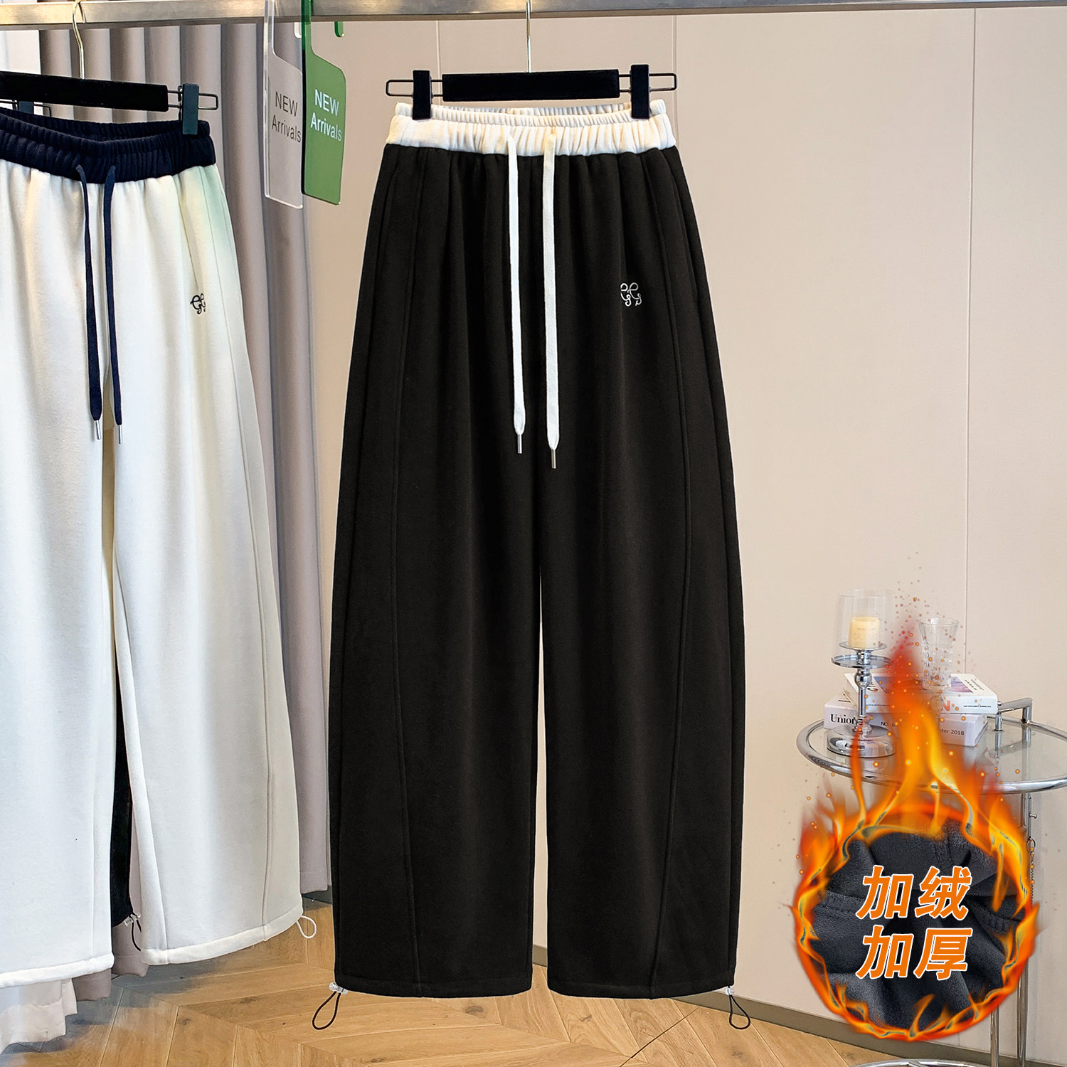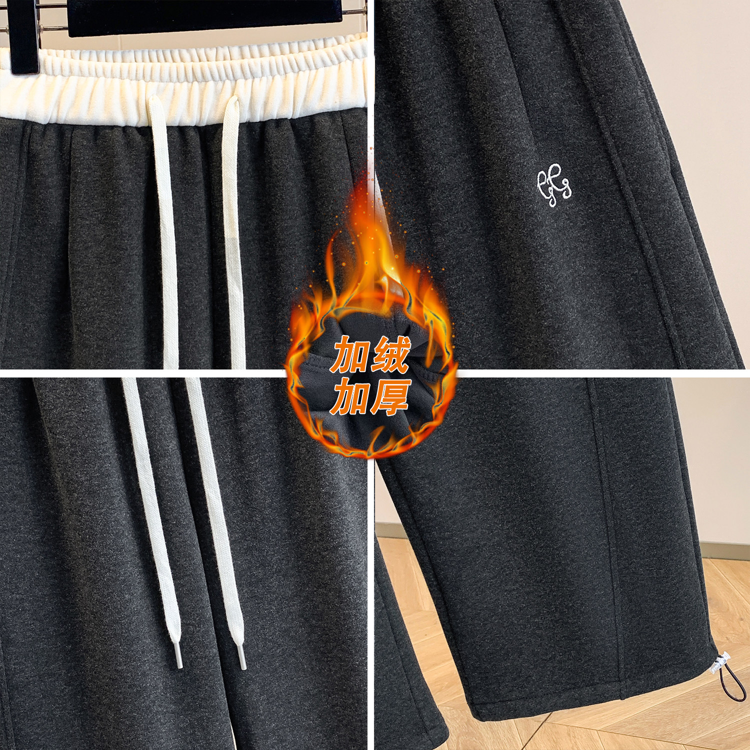 山东即墨加绒加厚纯棉卫裤 女秋冬宽松高腰显瘦两穿弯刀休闲束脚裤