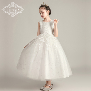 2020年新款 网纱蓬蓬长裙夏 女童礼服连衣裙白色蕾丝公主婚纱裙长款