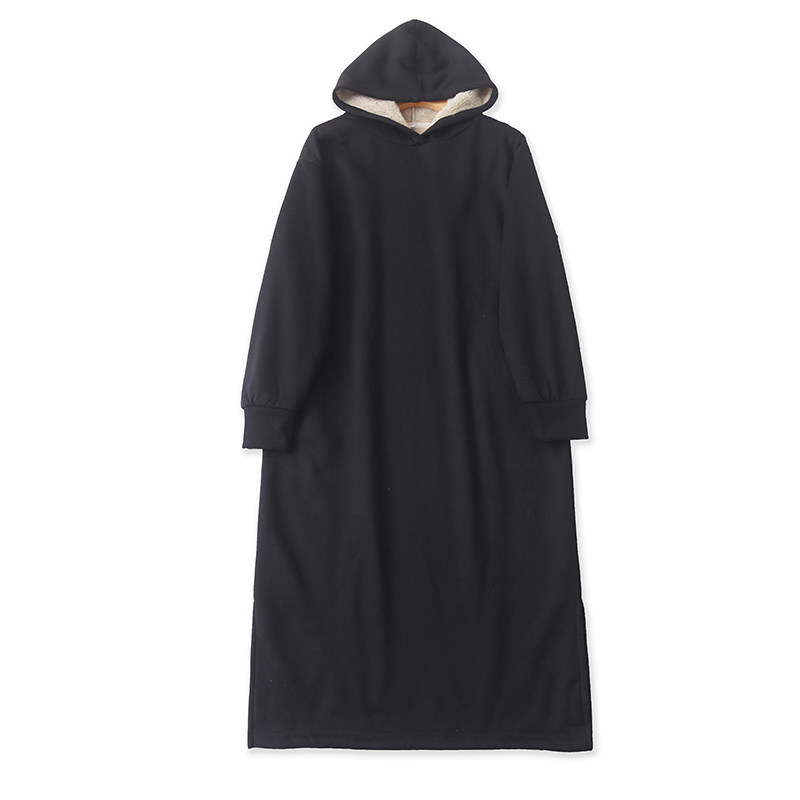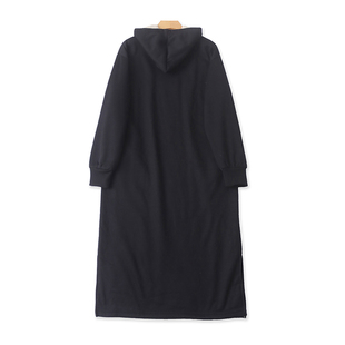 时尚 秋冬新款 女宽松开叉外套裙子16034 连帽卫衣裙 日单加绒厚长款