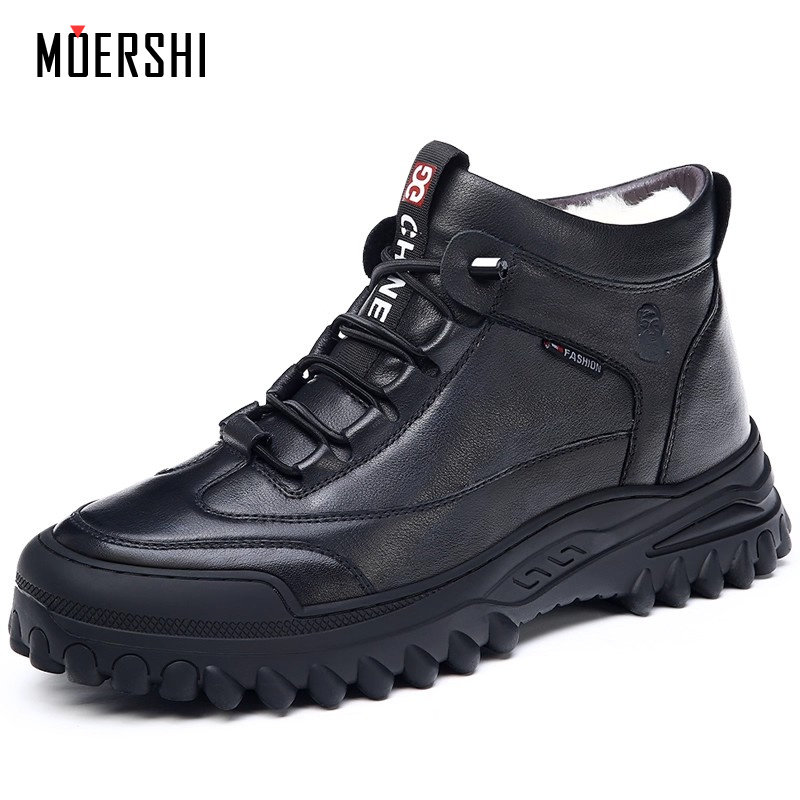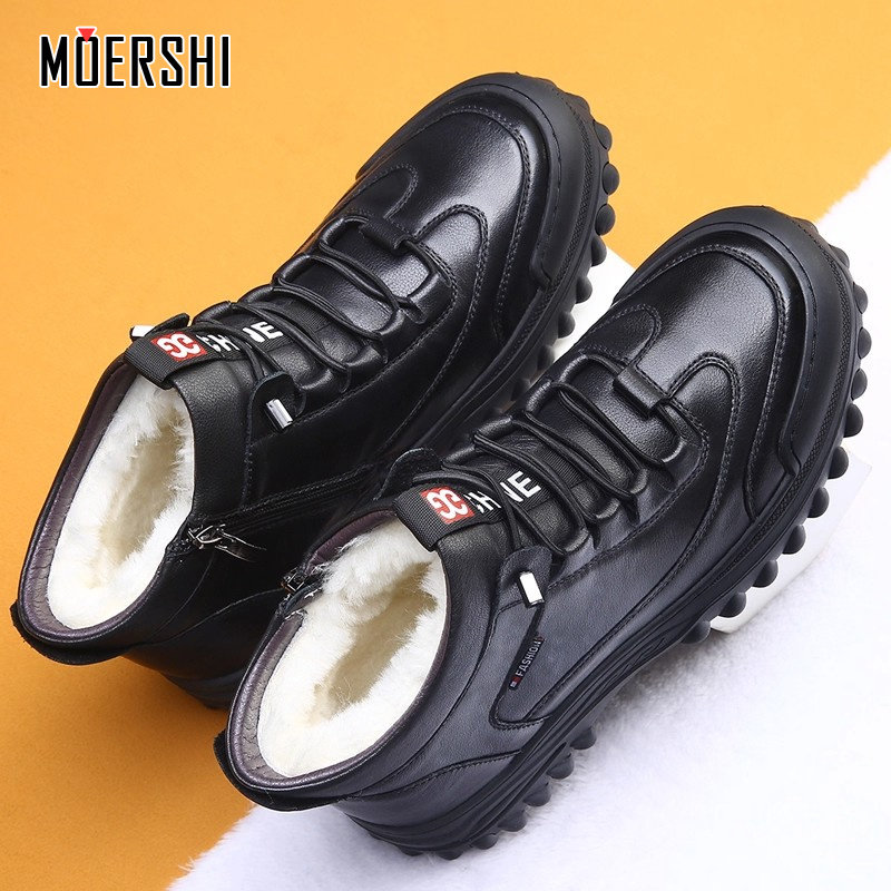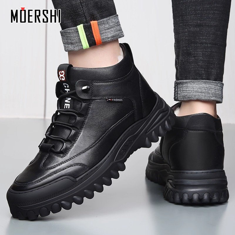 男鞋 子青少年休闲高帮运动鞋 冬季 皮面厚底鞋 新款 融雪鸿星尔克板鞋