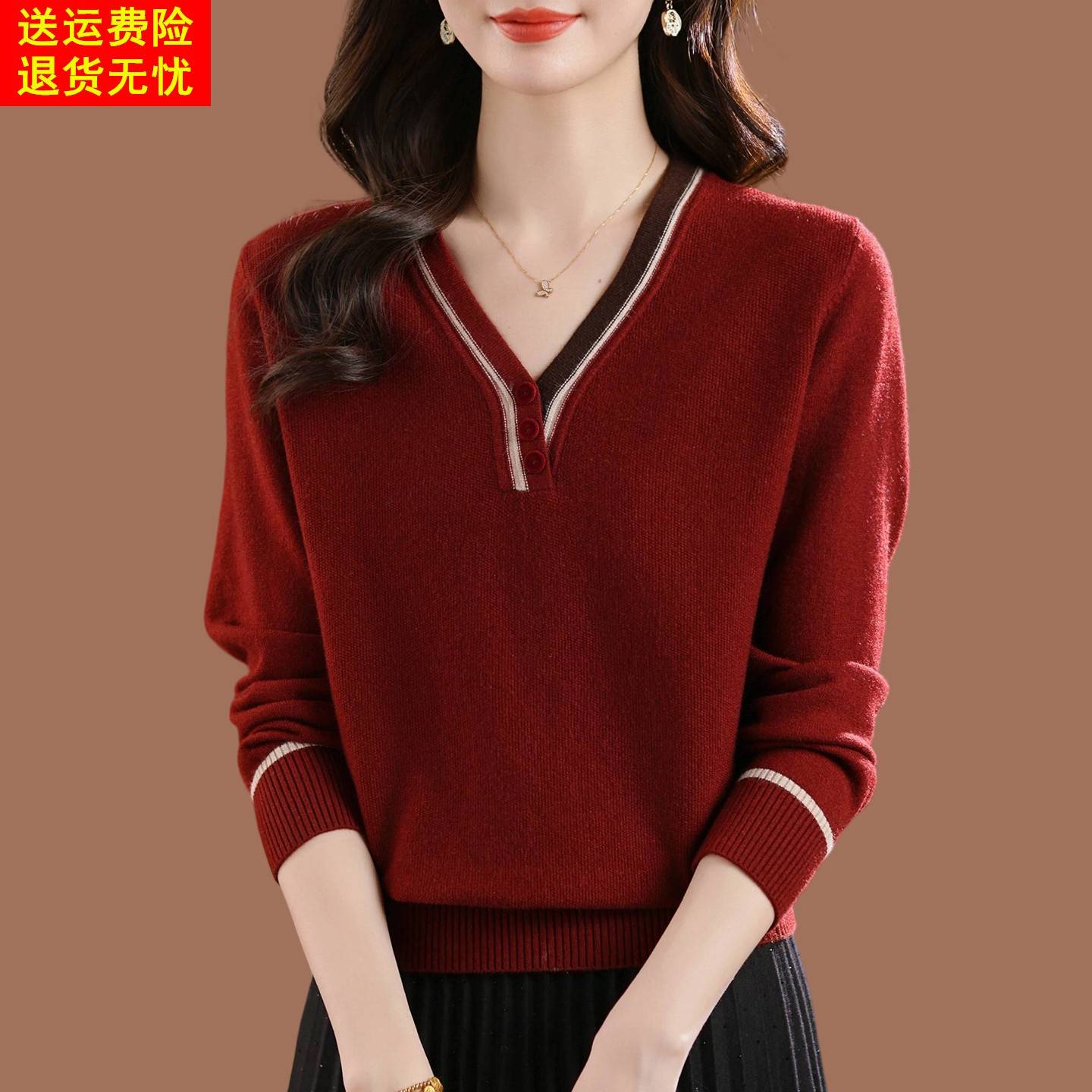 宽松上衣 洋气减龄针织打底小衫 中年妈妈桑蚕丝长袖 t恤女2025秋装