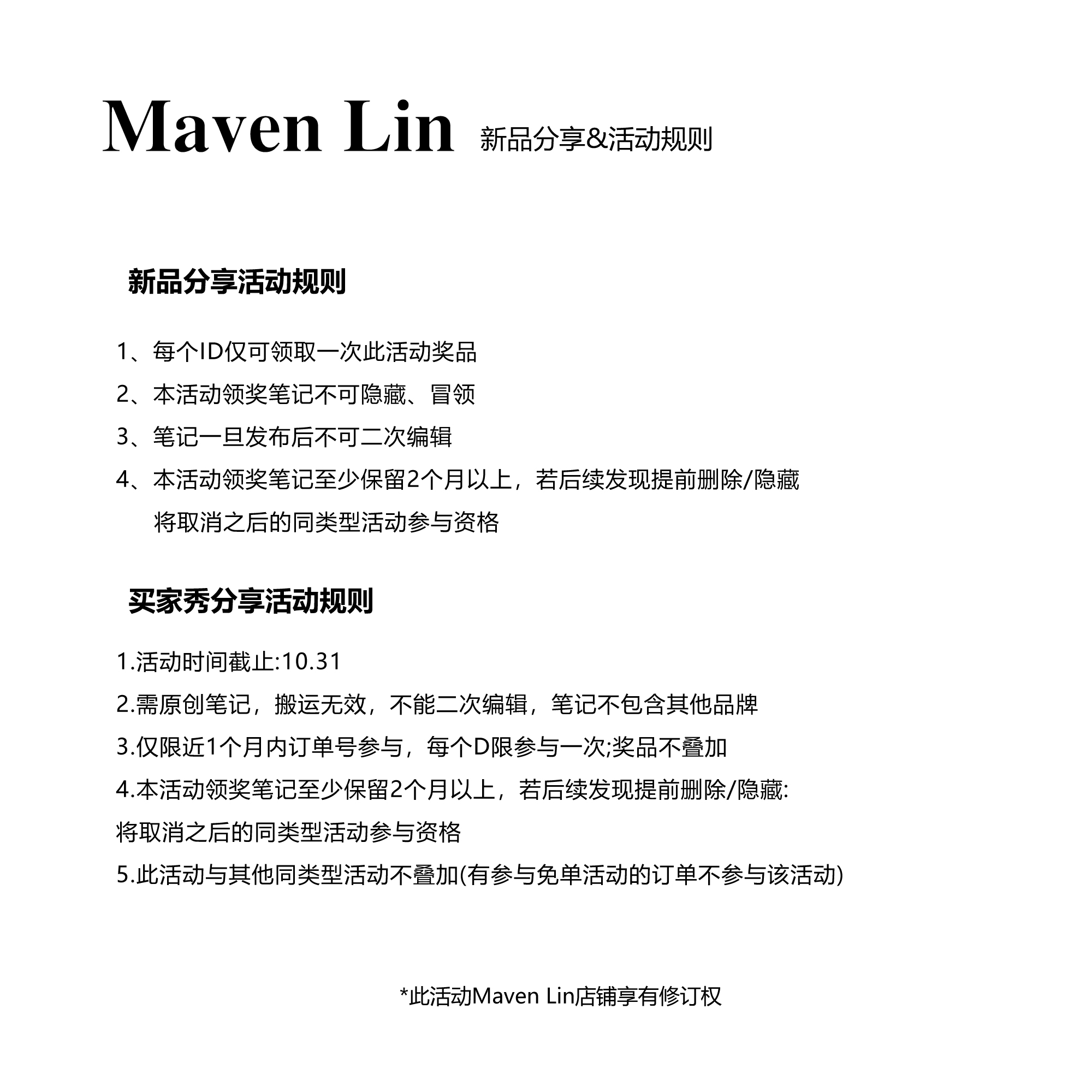 小红书&微博分享限时活动 10.20新品 下滑查看详情 Lin Maven