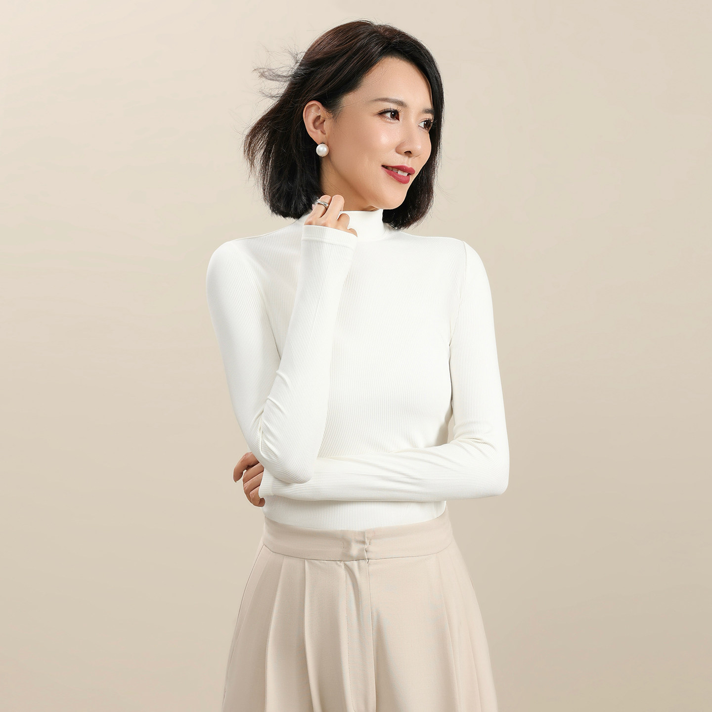 秋冬长袖 半高领肌底衣女修身 内搭保暖秋衣圆领 蚕丝打底衫 哥弟商元
