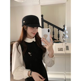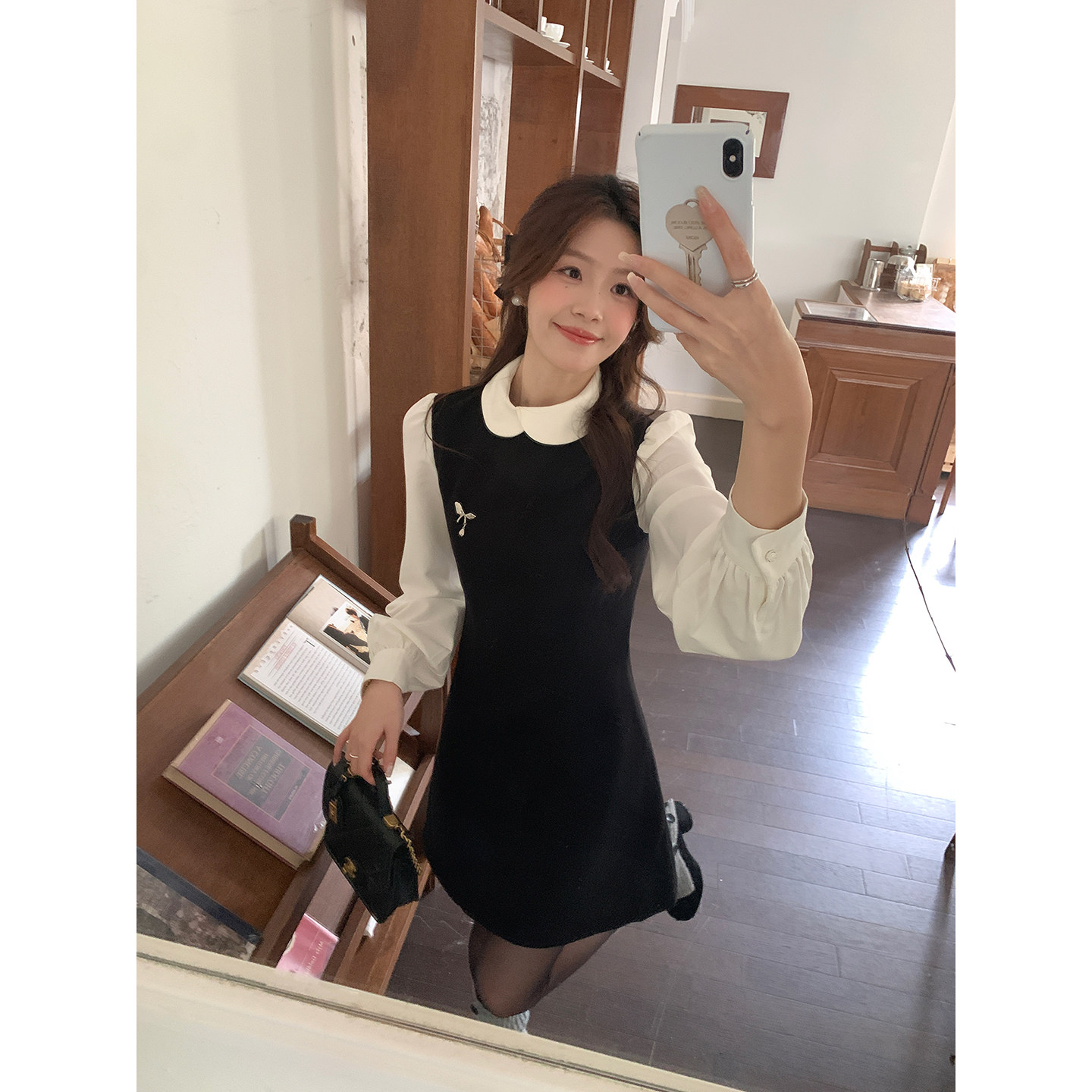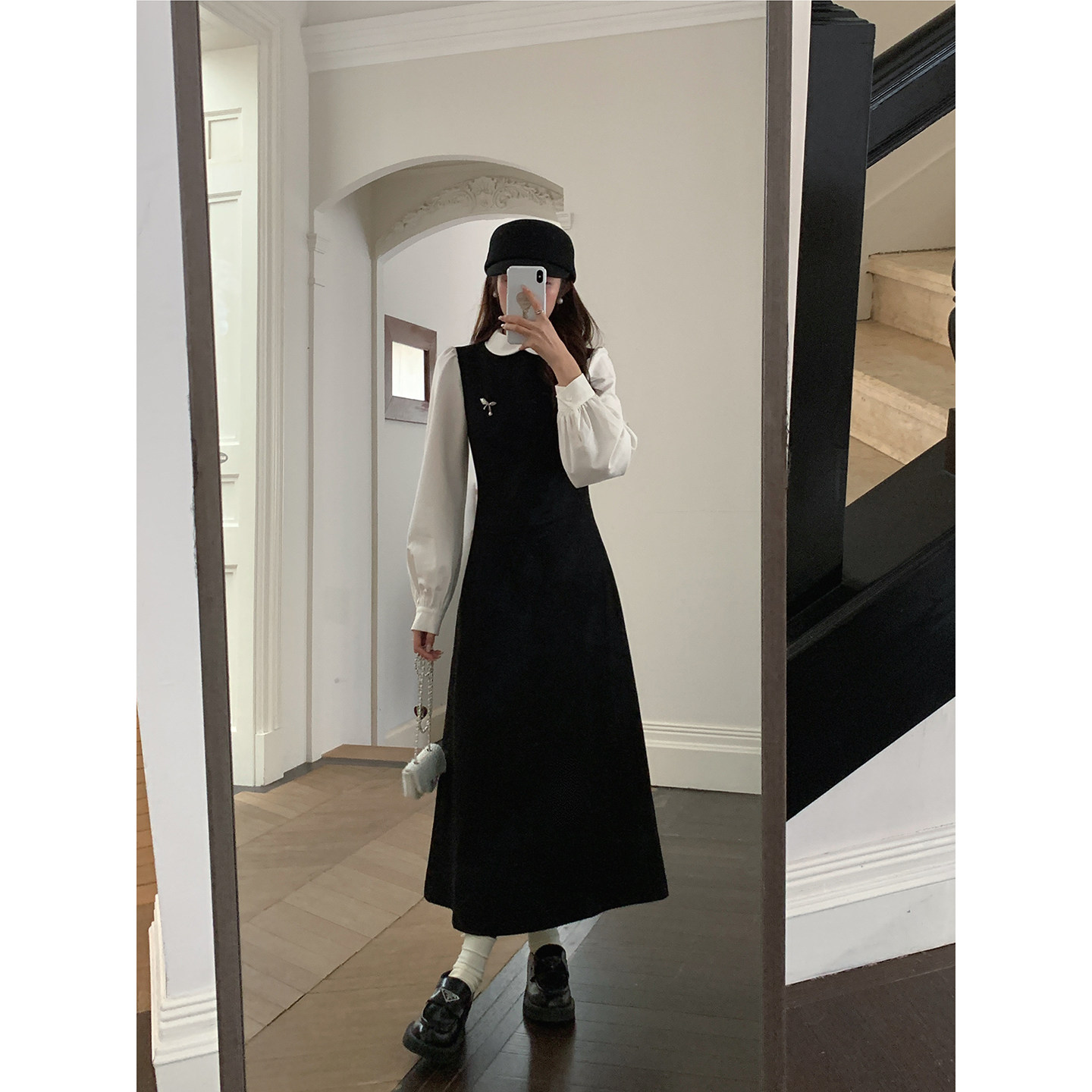 Even一雯 韩系高智感精致简约假两件收腰连衣裙带胸针 乖乖千金