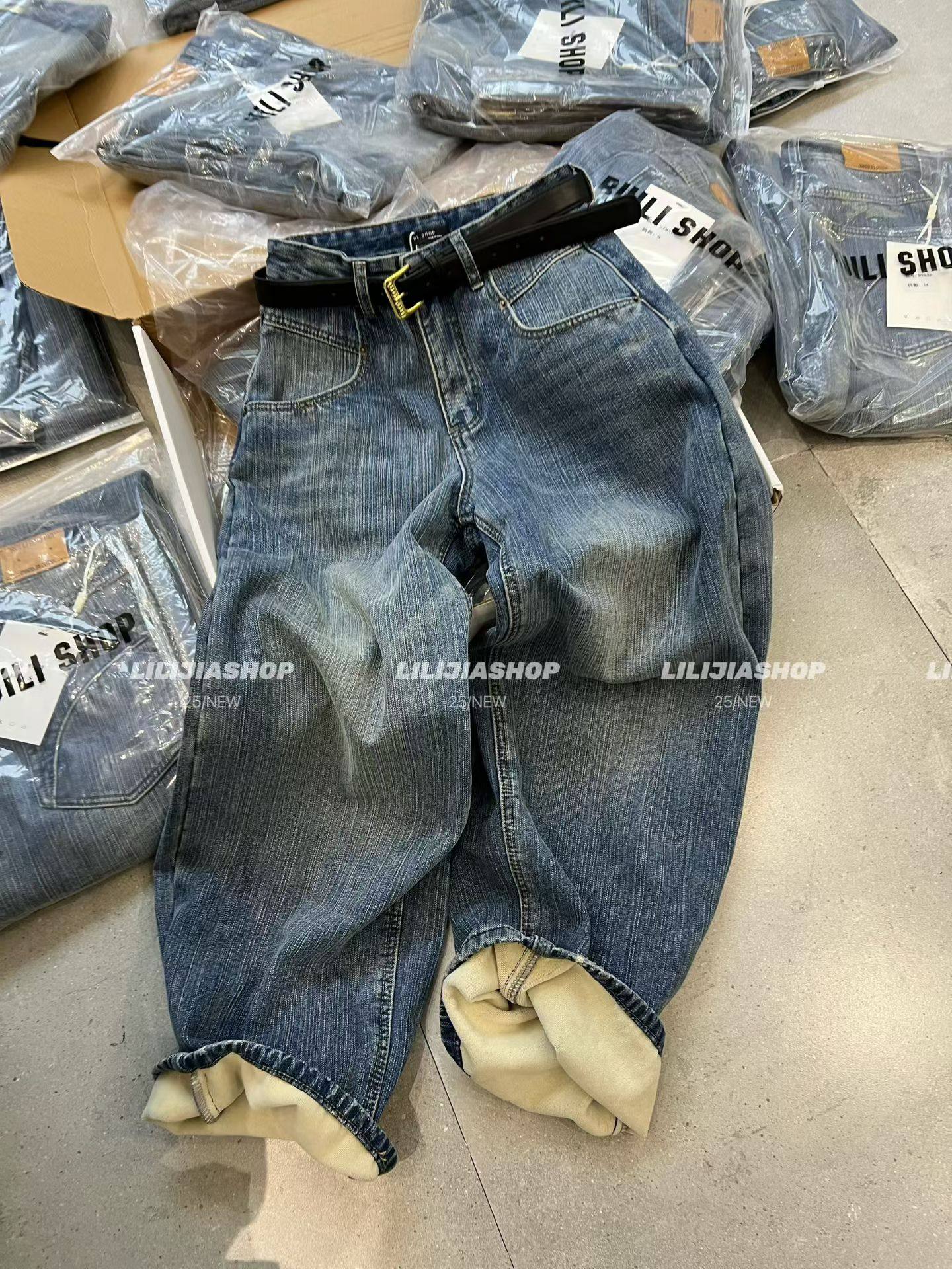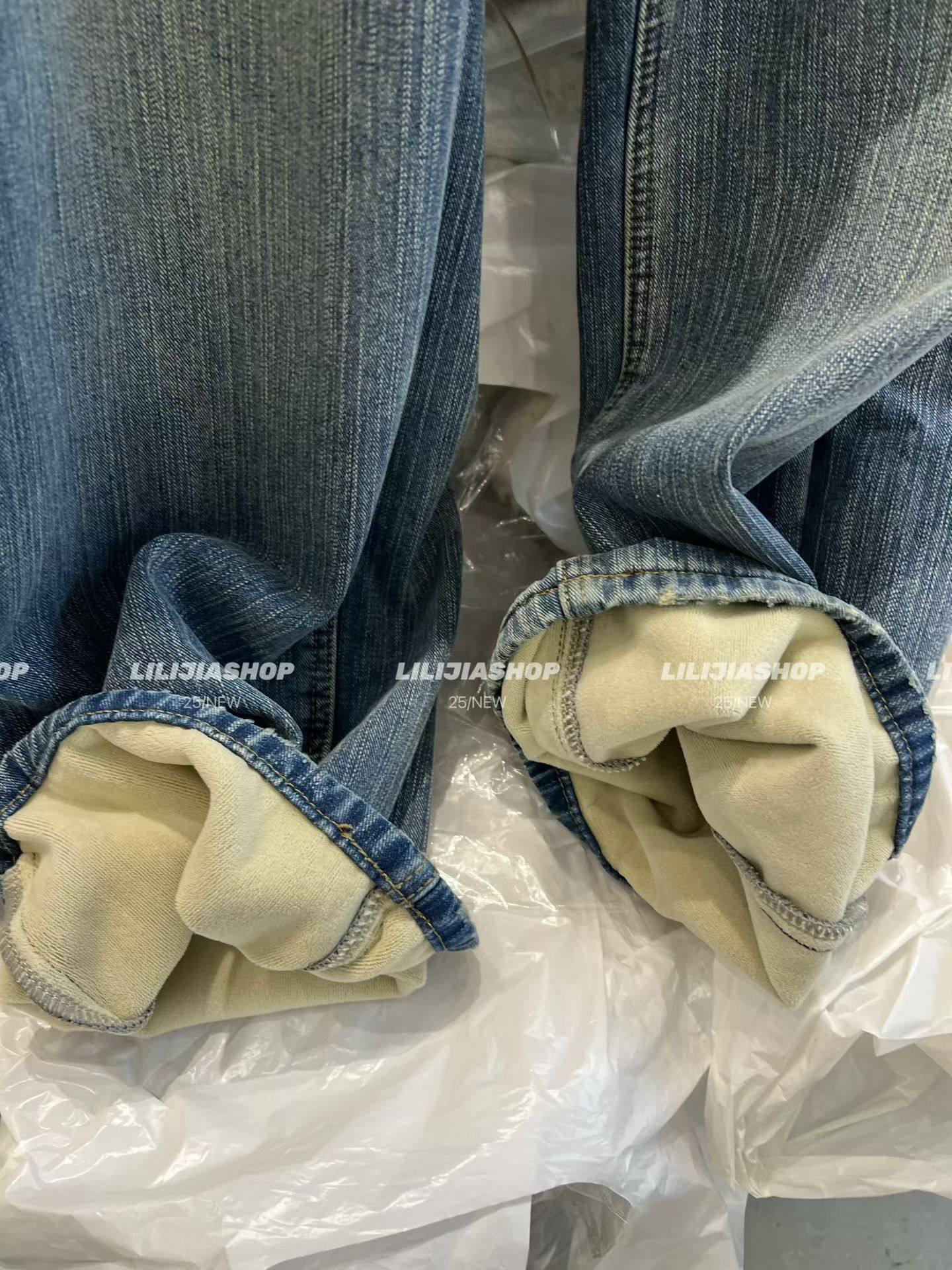 百搭宽松显瘦高腰加绒直筒阔腿牛仔裤 时尚 女 2025秋冬韩版 Miss家