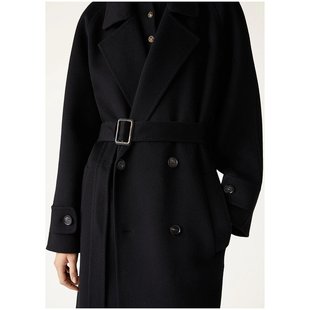 毛呢大衣 绵羊毛双面呢外套女通勤气质中长款 pusumede 布鲁斯之夜