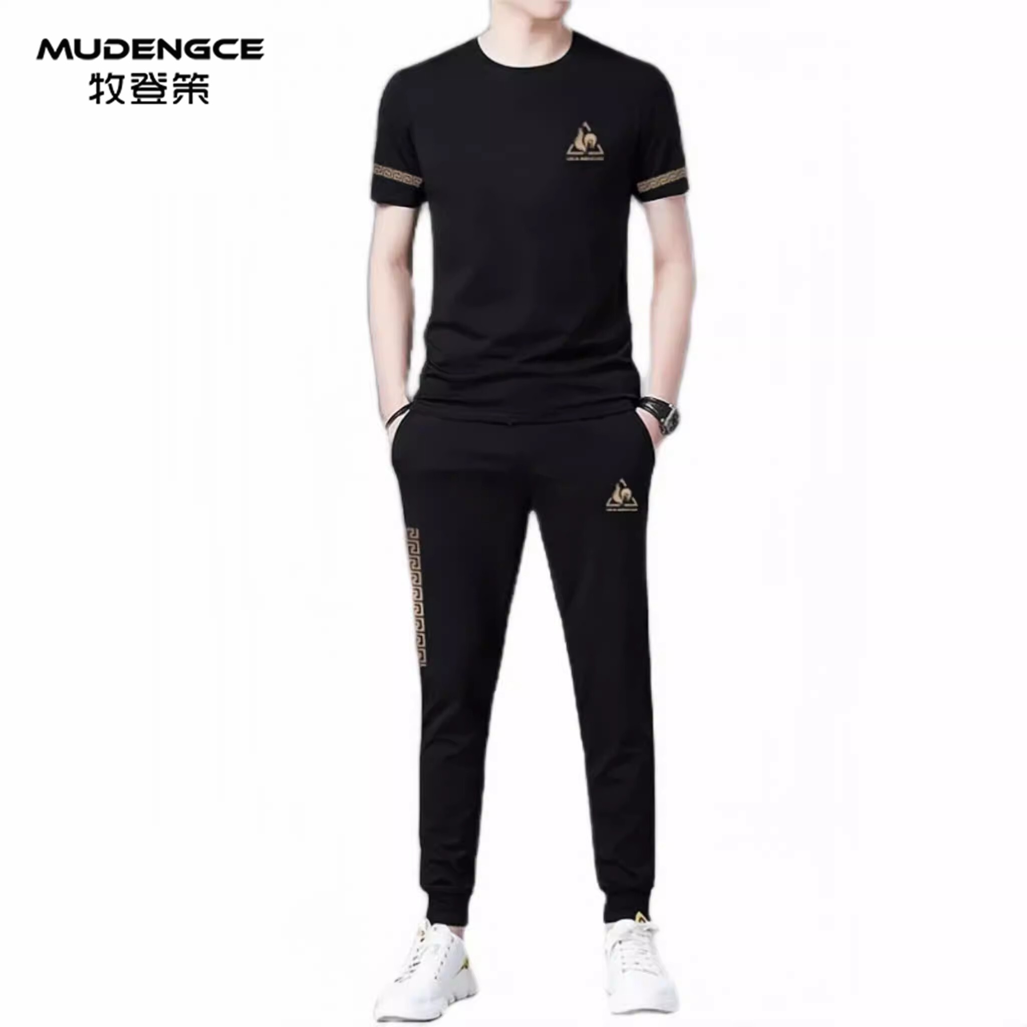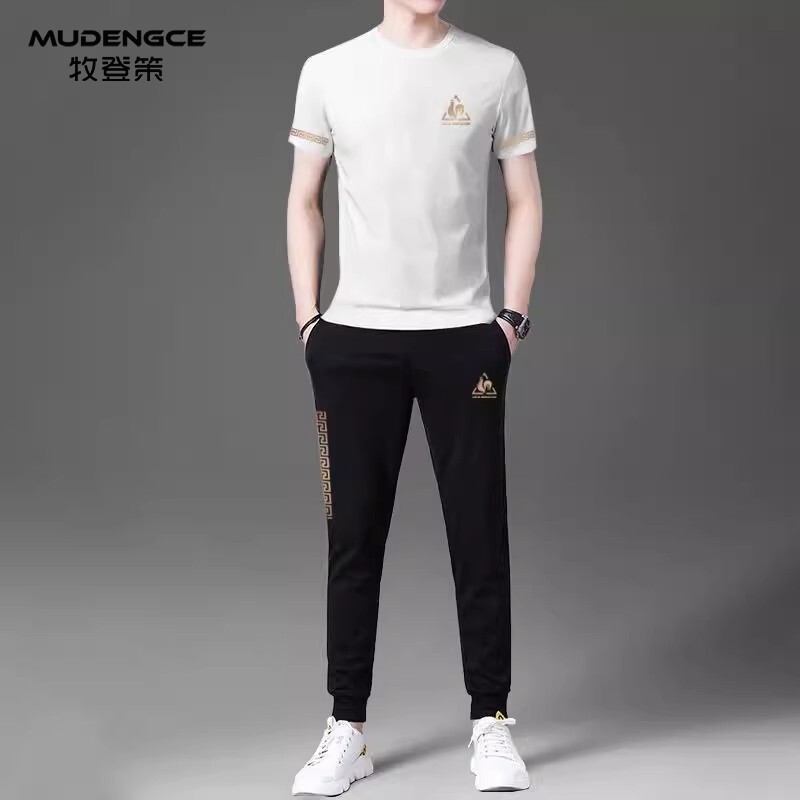 圆领运动风套装 T恤速干长裤 男士 短袖 跑步休闲两件套 冰丝薄款 夏季