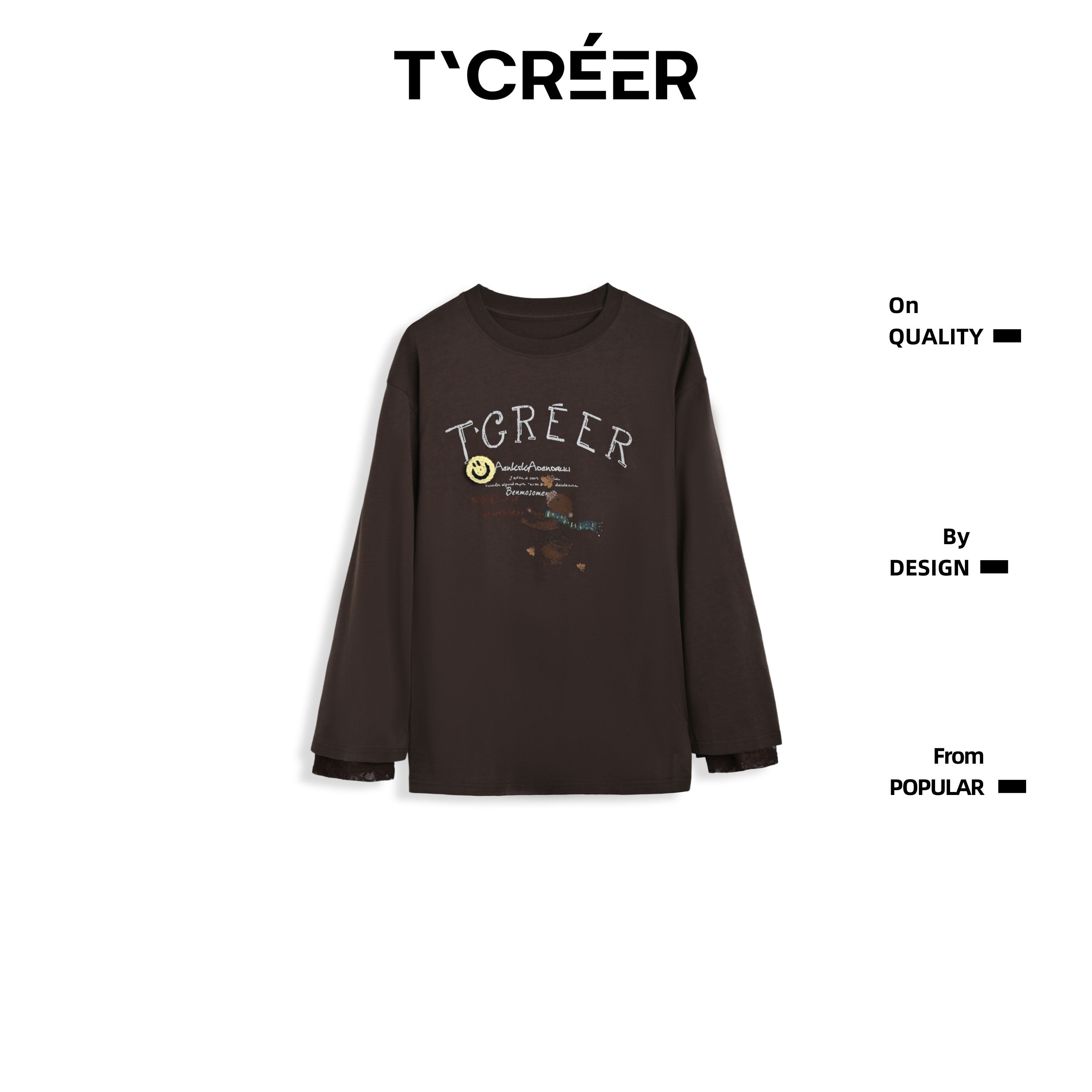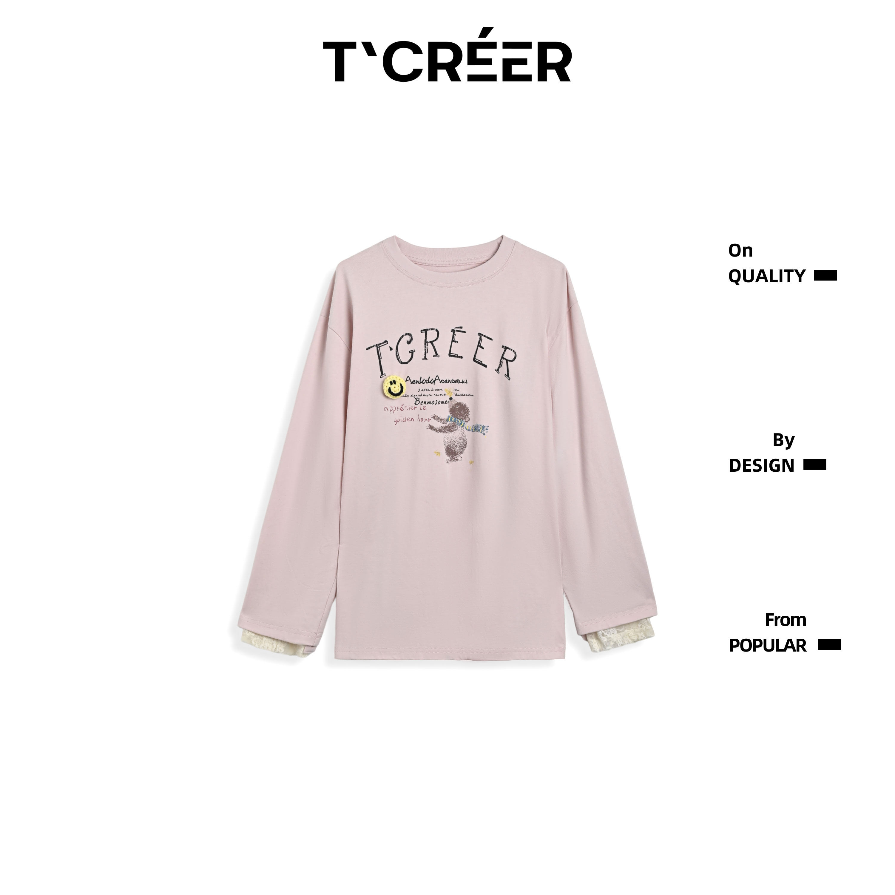 春季 T`CREER| 女圆领打底衫 小熊印花长袖 百搭上衣 溪溪清风